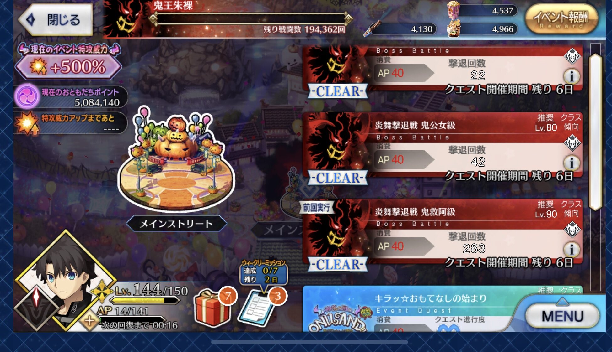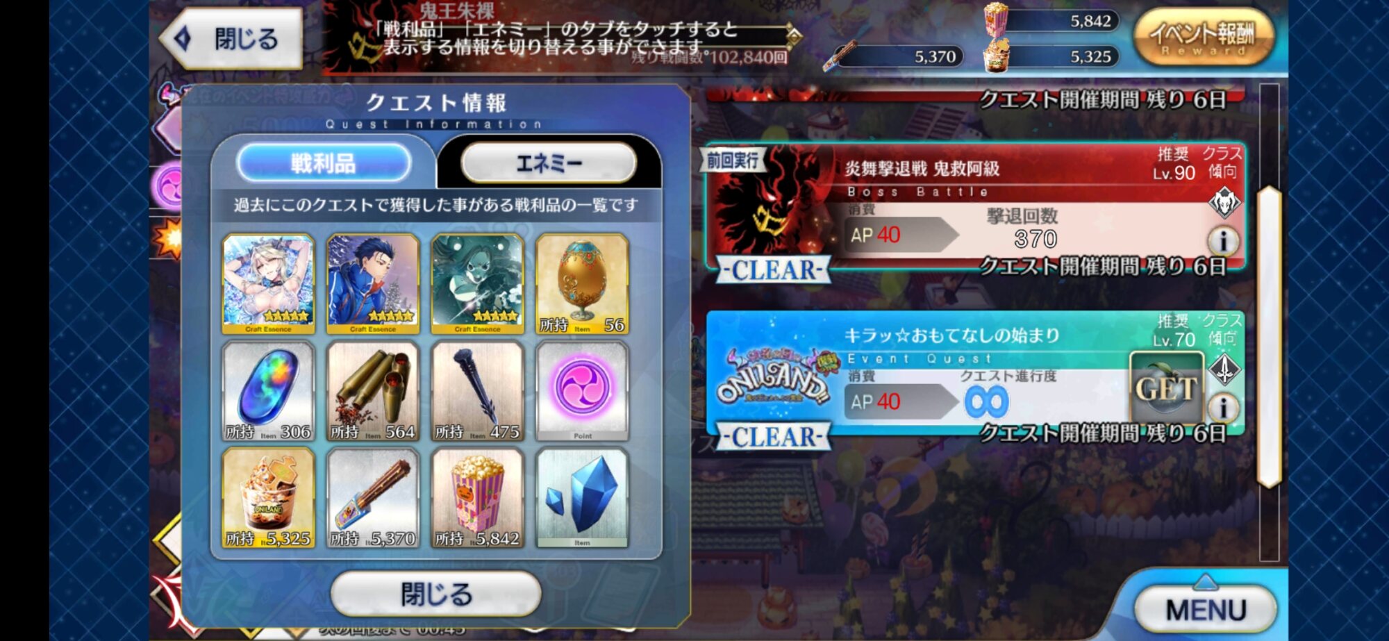 相手が可哀想になってくるレベルのオルジュナ無双でしたわ…向き不向きがあるんだろうけど今回の鬼王とかApoみたいな短期間開催のワンパン周回は周ってもあんまり苦にならないからガンガンできてホクホク