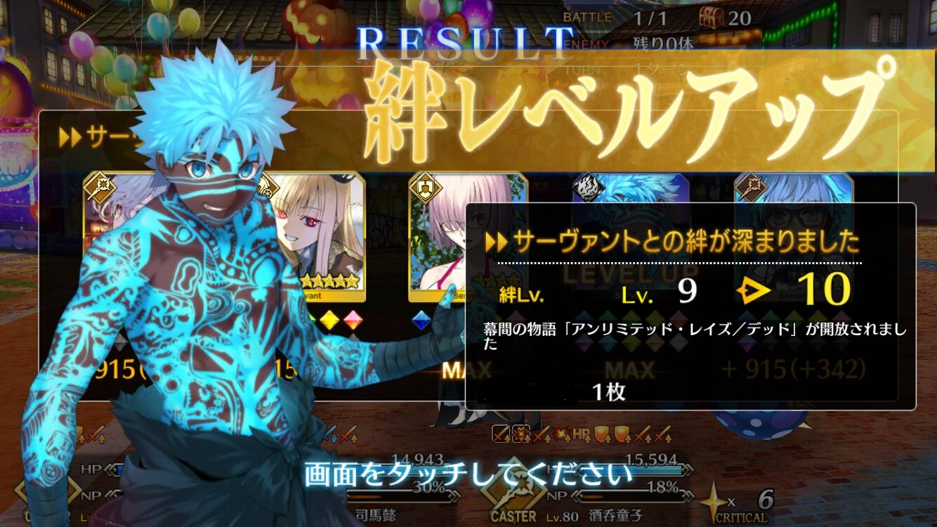 術酒吞ちゃんのために貯めてたなけなしの術石があっという間に溶けていったんですけどぉぉぉ!!(涙)鬼狩りの成果でアイテム交換全部終わったし、高難易度もうちのパーフェクト魔王ノッブが神性特攻かまして終わったし、次のハロウィンを待つだけだな~来週の月曜から始まってくれないかな~