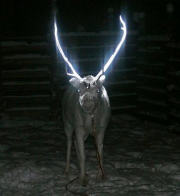 研究の為にトナカイに発光する塗料を塗った時の写真だそうだ