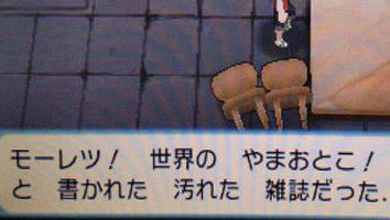 検証済みだからマジだよ。ヒューッ↓(ちかつうろに降ってくる音)「ヒカリです!よろしくね!」「ユウキだよ!よろしく!」ヒューッ↑(ちかつうろから出る音)これの繰り返しになるけど、ソフトと本体二つでOK。ダイパ←→プラチナ間でも勿論OK。(というか、私はそれでやった。)(わかりやすくヒカリとユウキにしたけど1P2P以外の意味はない念の為)うぉいちょっと待って。「徒然チルドレン」の新作がアップされてる……文化祭シーズンだから追加だって