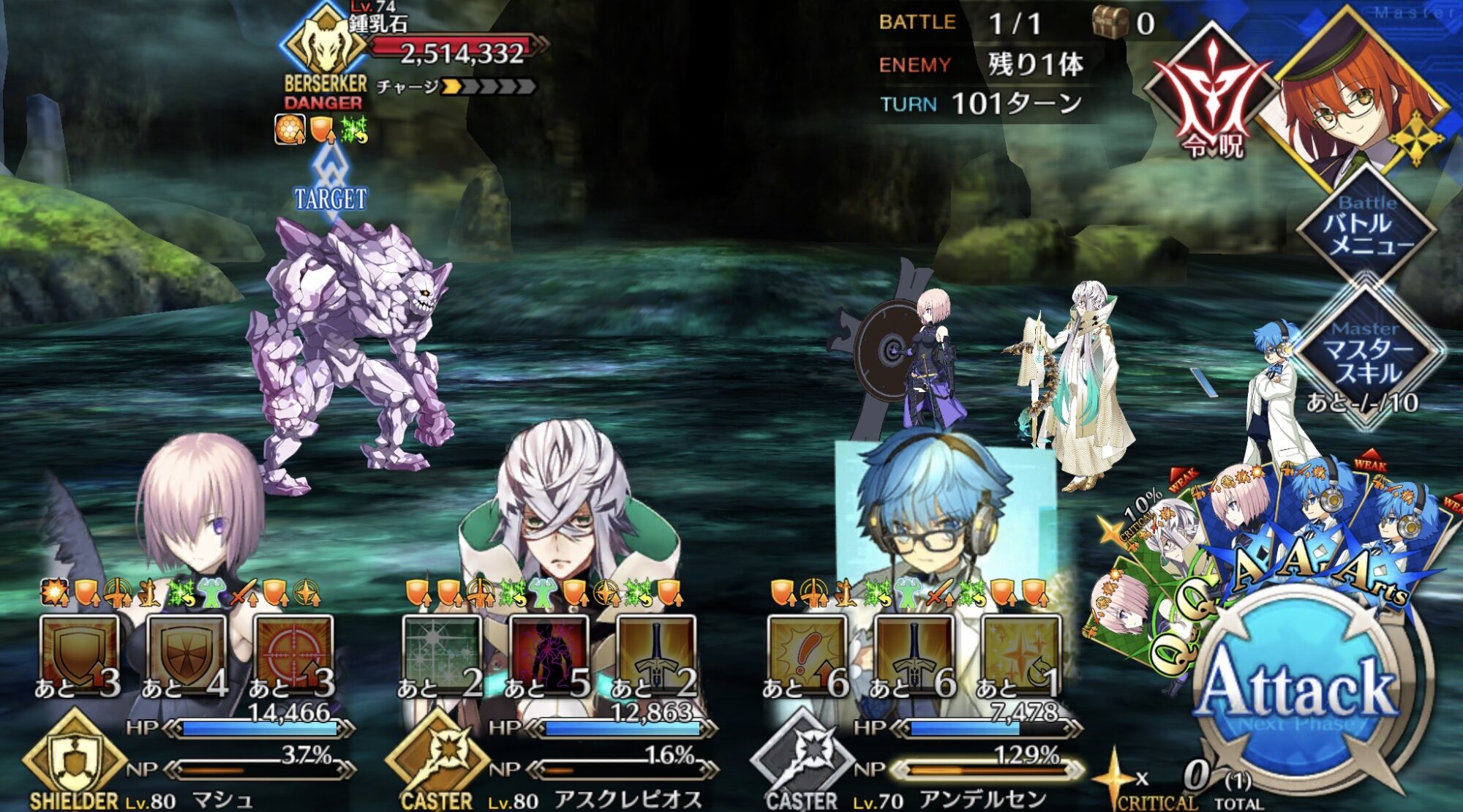 最終的にマシュ離した状態で特攻しかけて敵もろとも自爆で消え去りそう「マシュ、回答の入力を!」