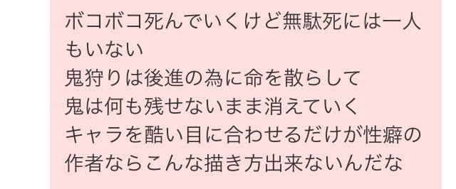 破壊の後には再生があるはずだからセーフ今更しのぶさん死んだ事でうだうだ言ってるけど残当な結果やろ