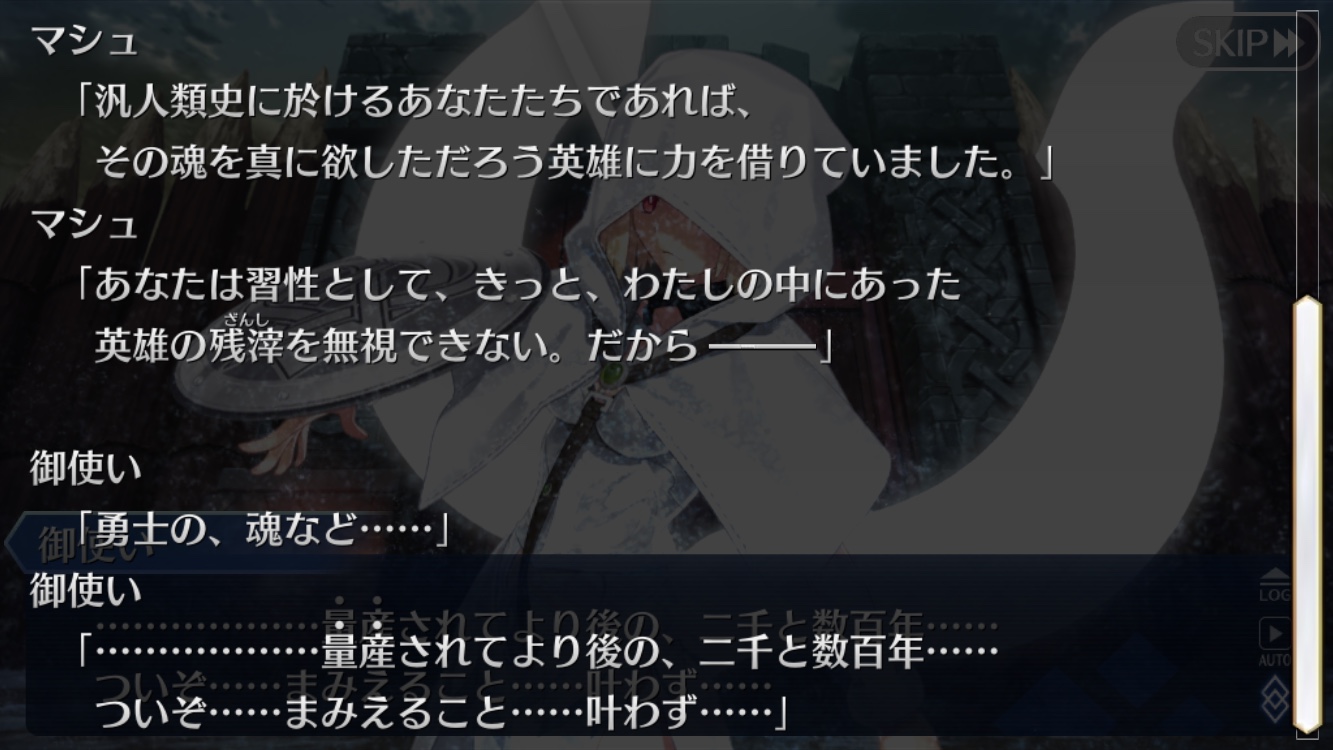 始皇帝の異聞帯の「永久に続く泰平の大地」とか好きよ、ストーリーでは完璧に否定するんじゃなくて殴って決めてくれて嬉しかったし