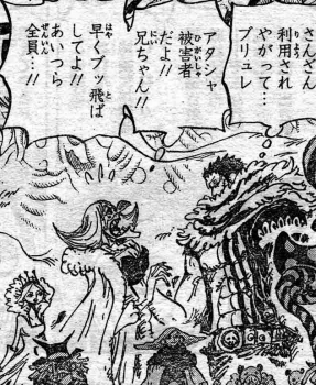釣り宣言されてたけど、本当は似たような事件があったのではないだろうか。麦わらの一味のメンツ考えてみるとサンジにヨンジが居るくらいで兄弟の一番上ってクルーは居ないんだな。ブルックは生前の事語らないからもしかしたら下の兄弟居たのかもしれないけど