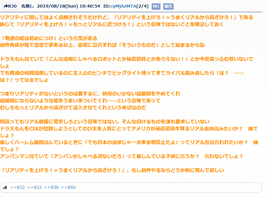 と突っ込んだらキリがないぞリアリティとはリアルに近づけるのではなく、如何に嘘を本当っぽく仕上げるかという意見を前ここで見かけたような気がする