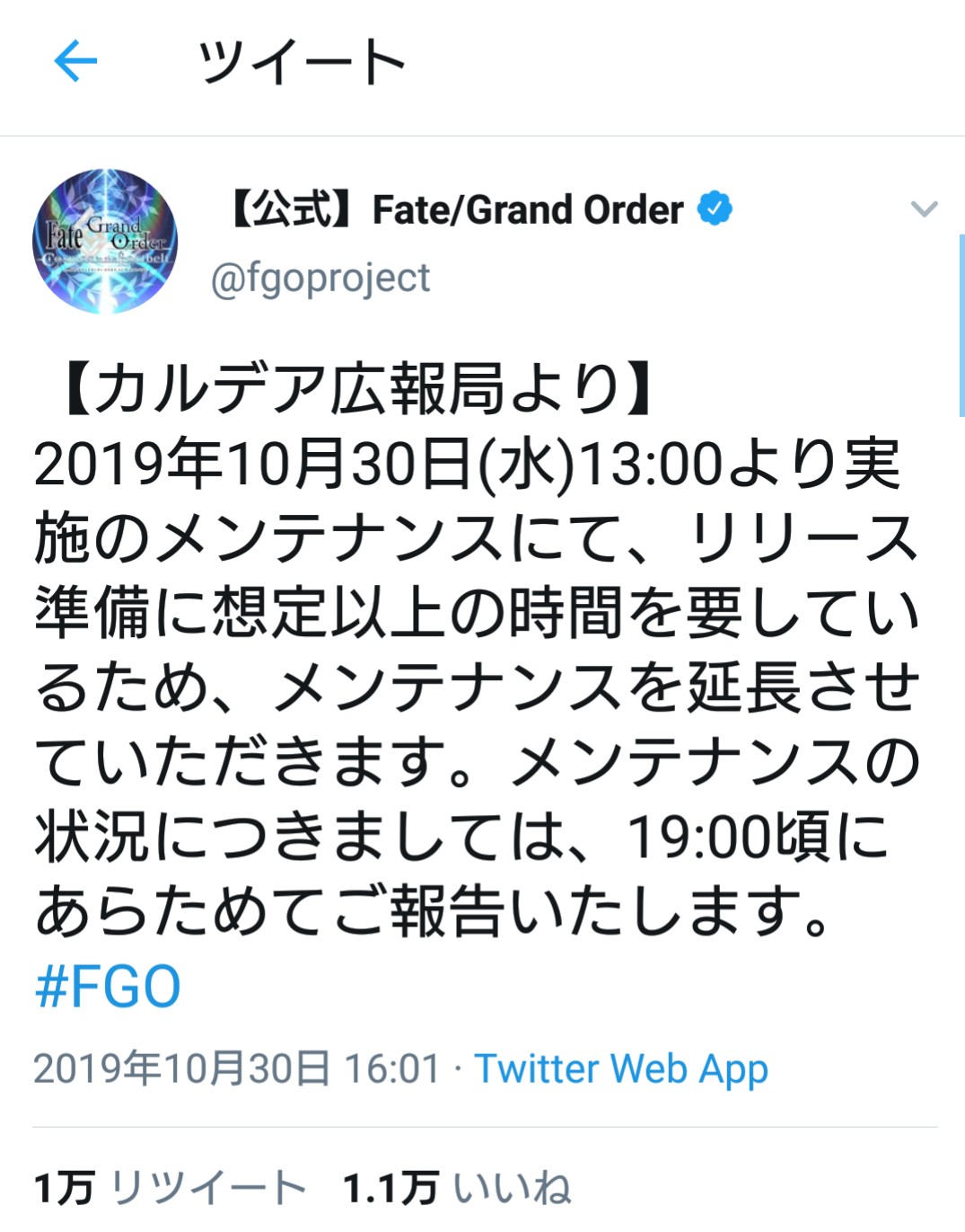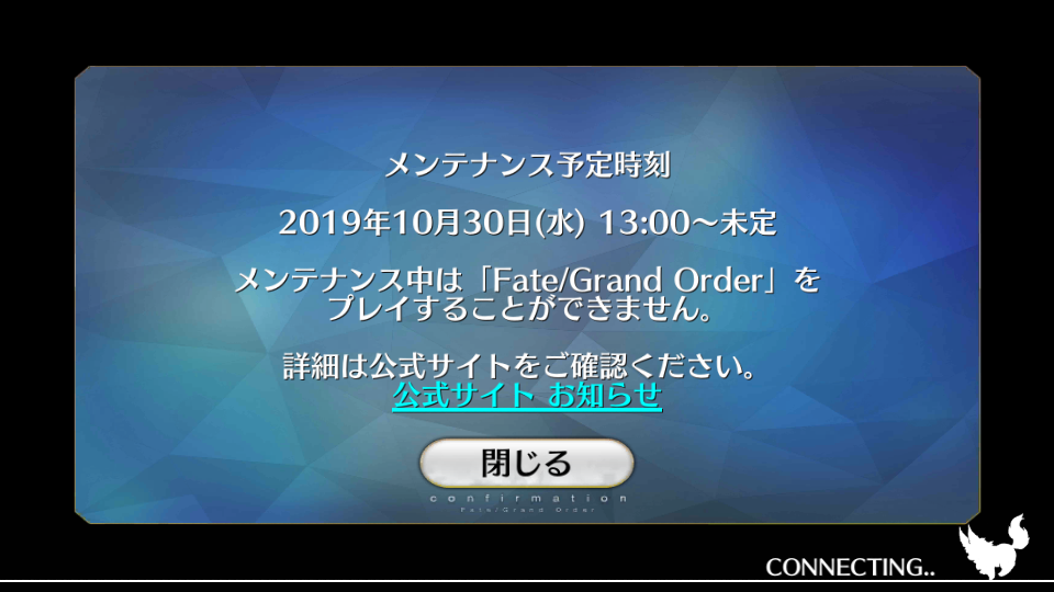 終わってねーじゃねーか!20時予定のお知らせ更新もきてないし、20:30メンテ終了に花京院の魂をかけるぜ
