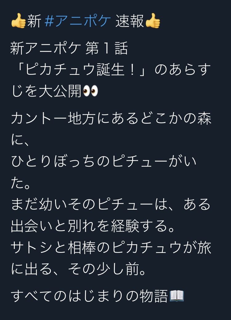 オーキド博士が関わるピカチュウだと、ゲームの「ピカチュウげんきでちゅう」を唐突に思い出したわ仲間を失って茫然自失としたピカチュウをオーキド博士が保護したけどなんども抜け出して、