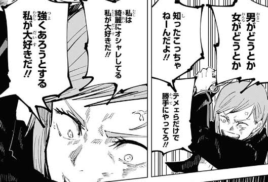 野薔薇ちゃんはイケメンというより男前だと思いますとりあえず他人の価値観を指して「それ間違ってるよ」は悲しくなるし辛くなるから止めてくださいお願いします(土下座)