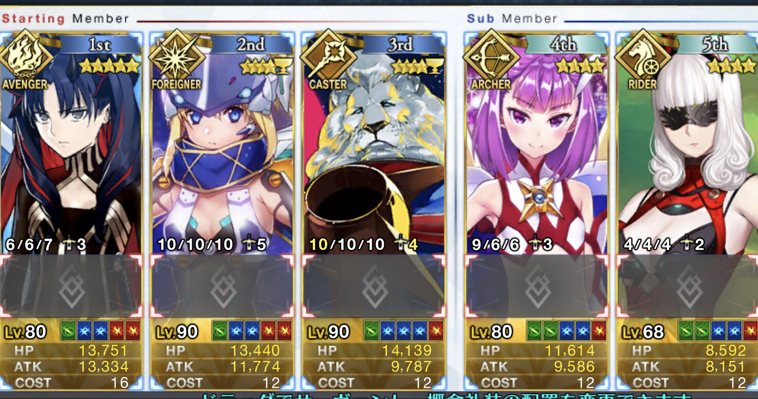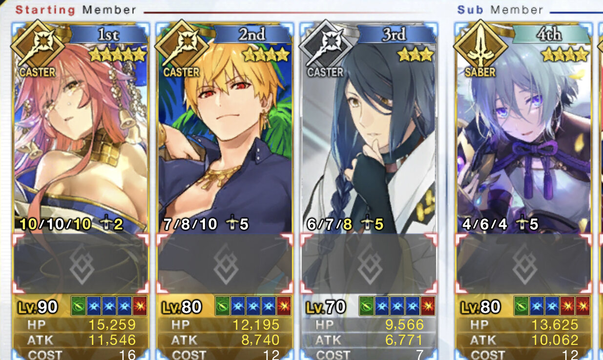 術ギル2(宝具マ)、オケキャス、玉藻、アサエミ、バサランテ、三蔵ちゃん