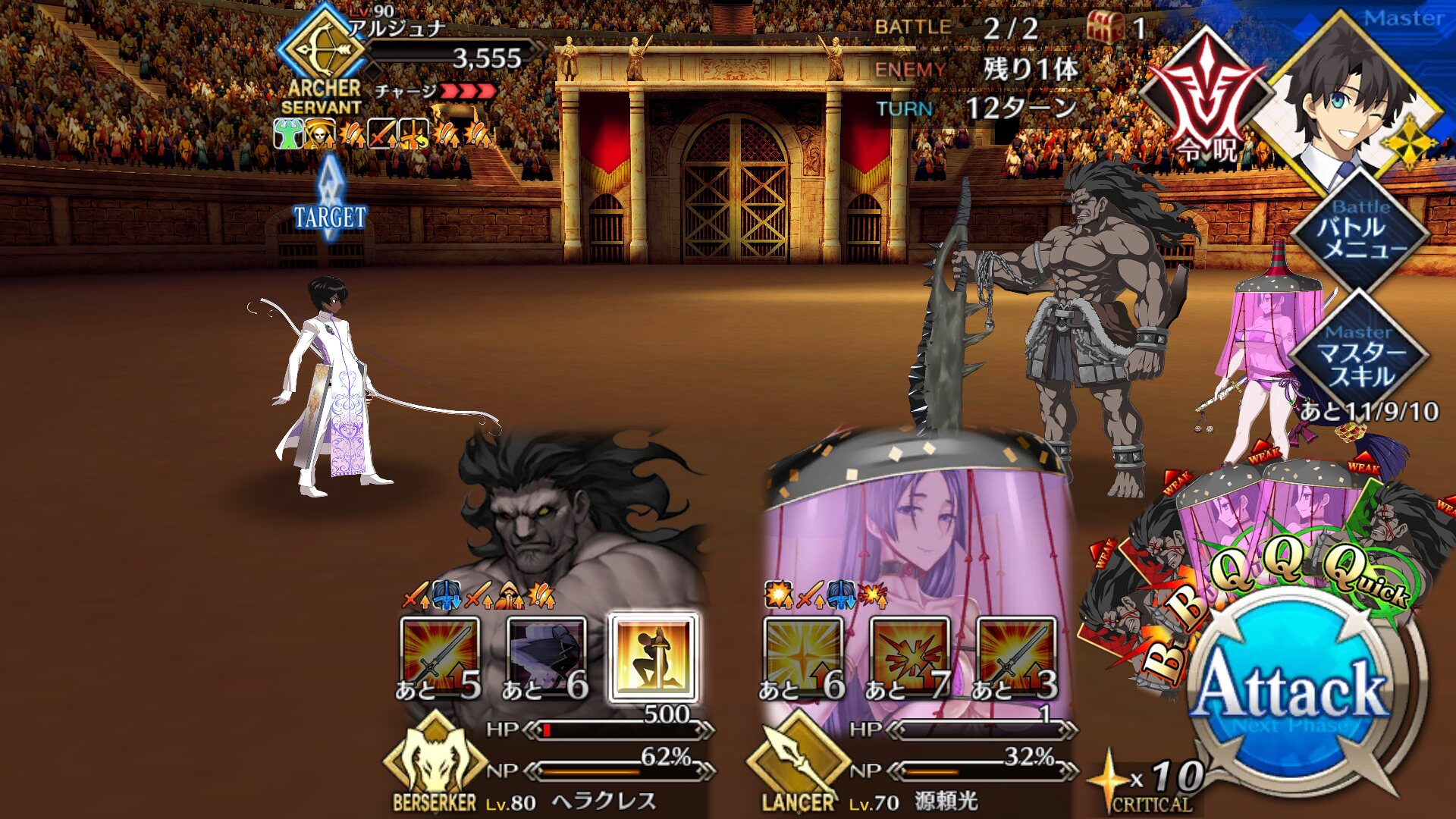 ・宝具のデバフが弱体解除とチャージの最果ての加護を誘発してやられたからサポベディをアタッカーにして勝てた、シナリオ的にも熱かった獅子王戦