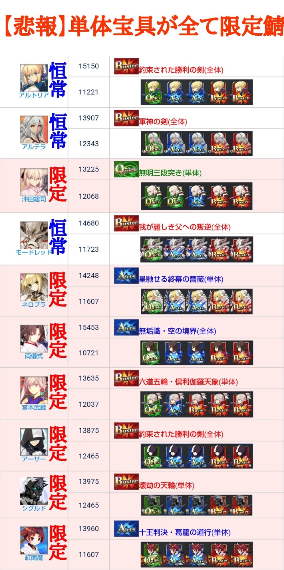 イシュタリんでちゃったから単体宝具でさアルトリアシリーズの、増やすだけ増やしておいて使いこなせて無い感