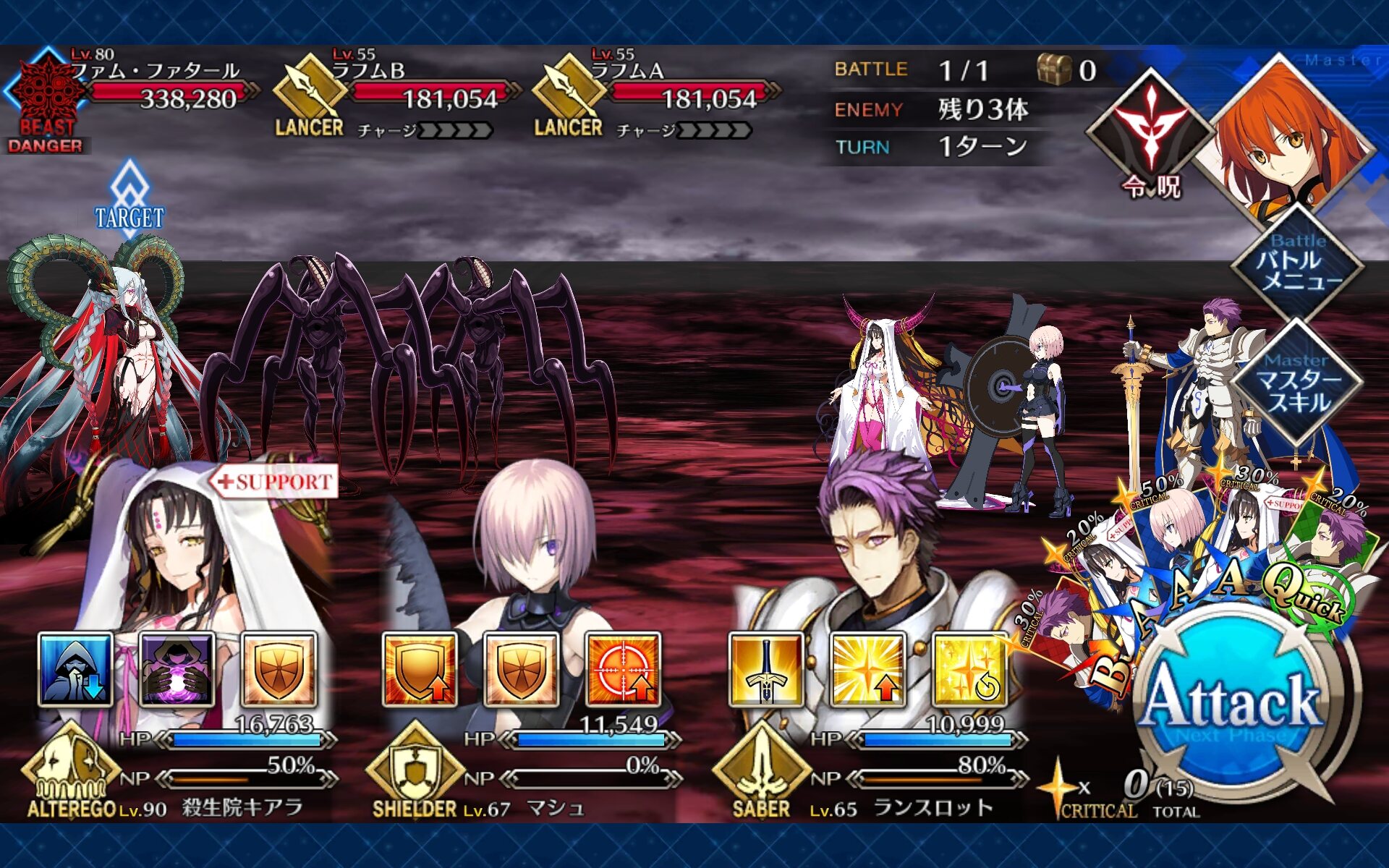 ・雑魚から倒してボスを倒すやり方で進めてたら吸血×2からの宝具でマシュをコロコロしたカーミラ教官