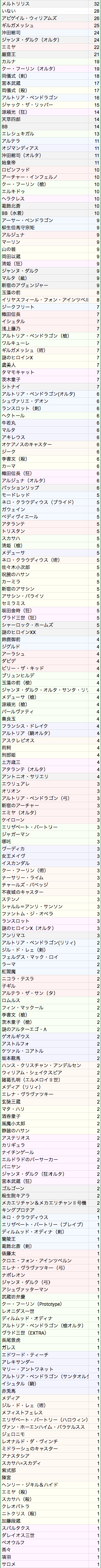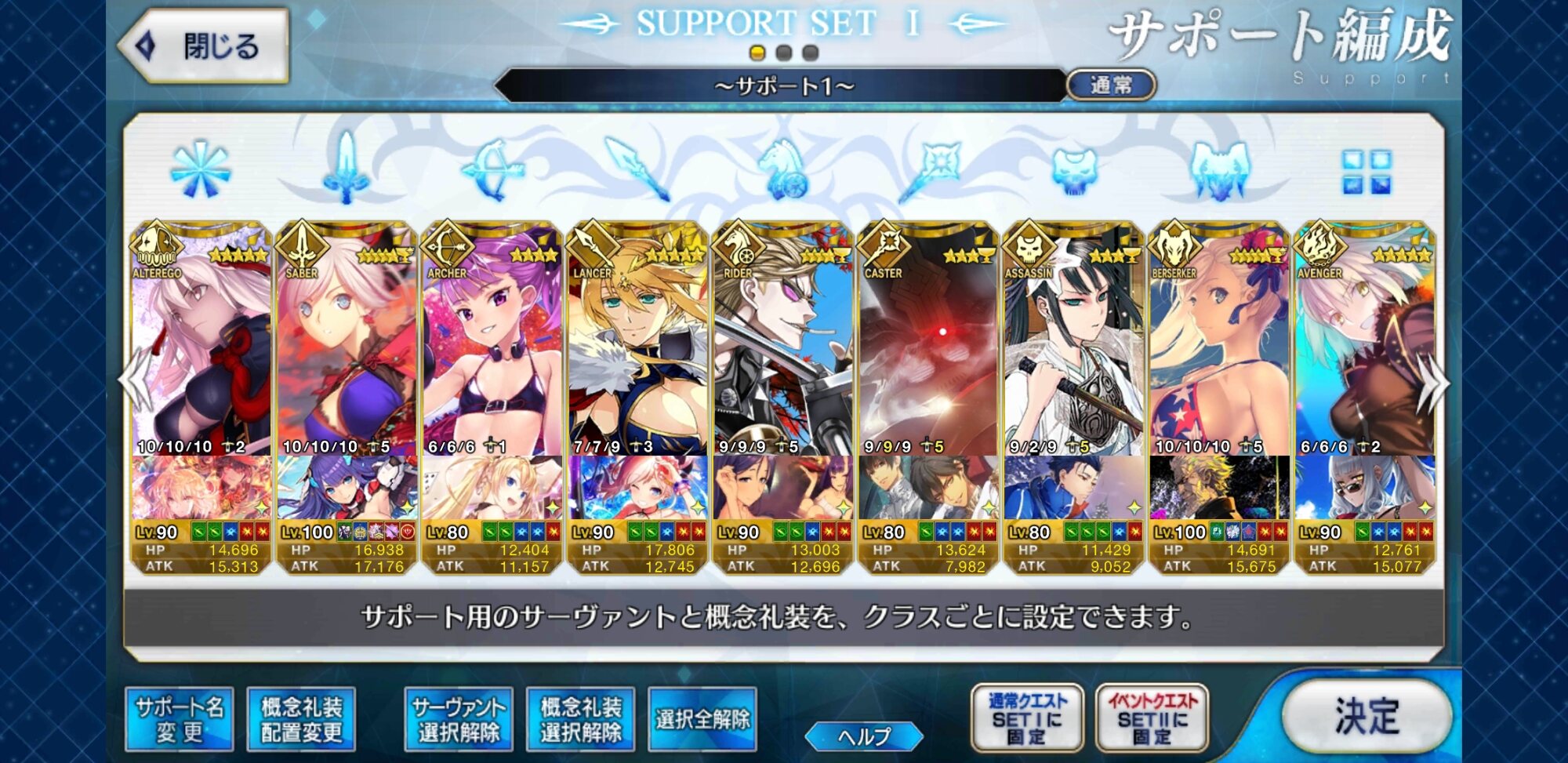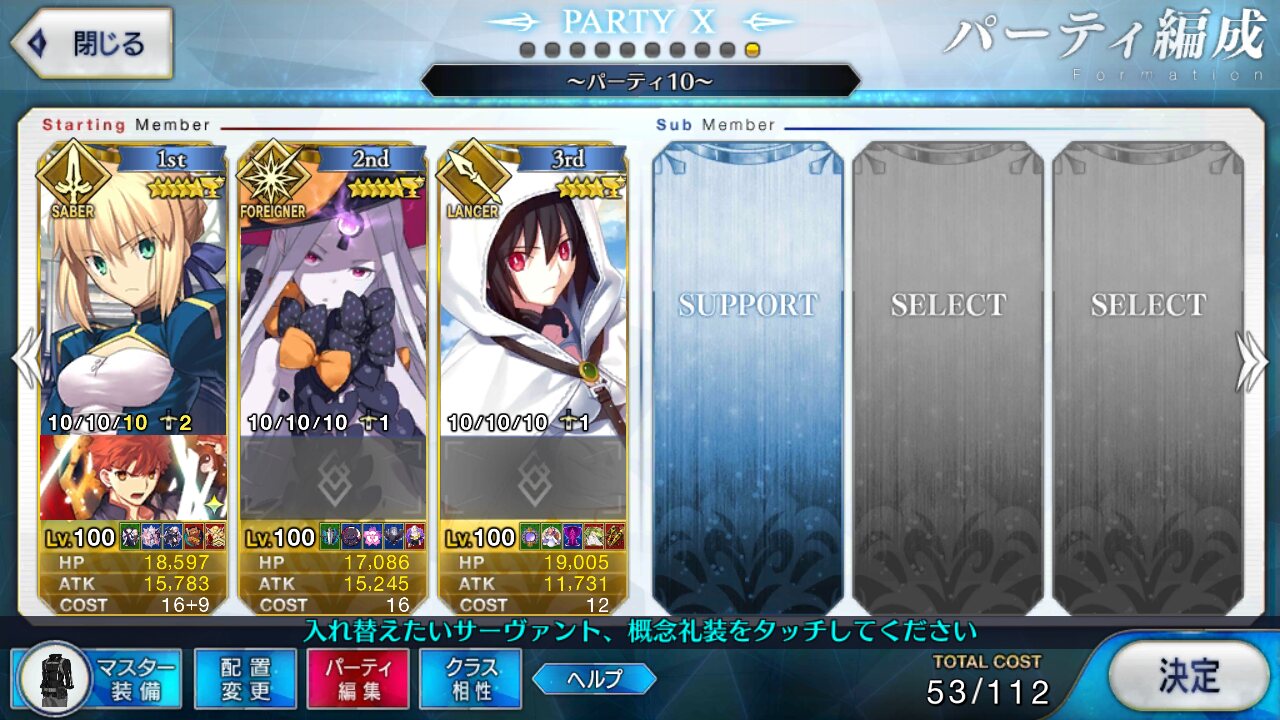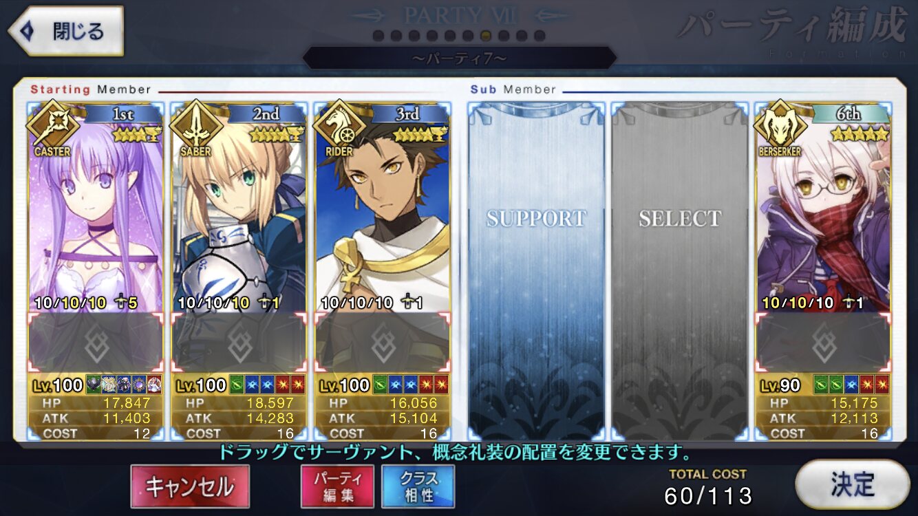 キャスターのサポートはどうするかいつも悩む。需要敵にはカルティー孔明だけどマーリン借りたい人もいるだろうし、初心者マスター用にアタッカー置くべきなんじゃ、という気もする。>>892