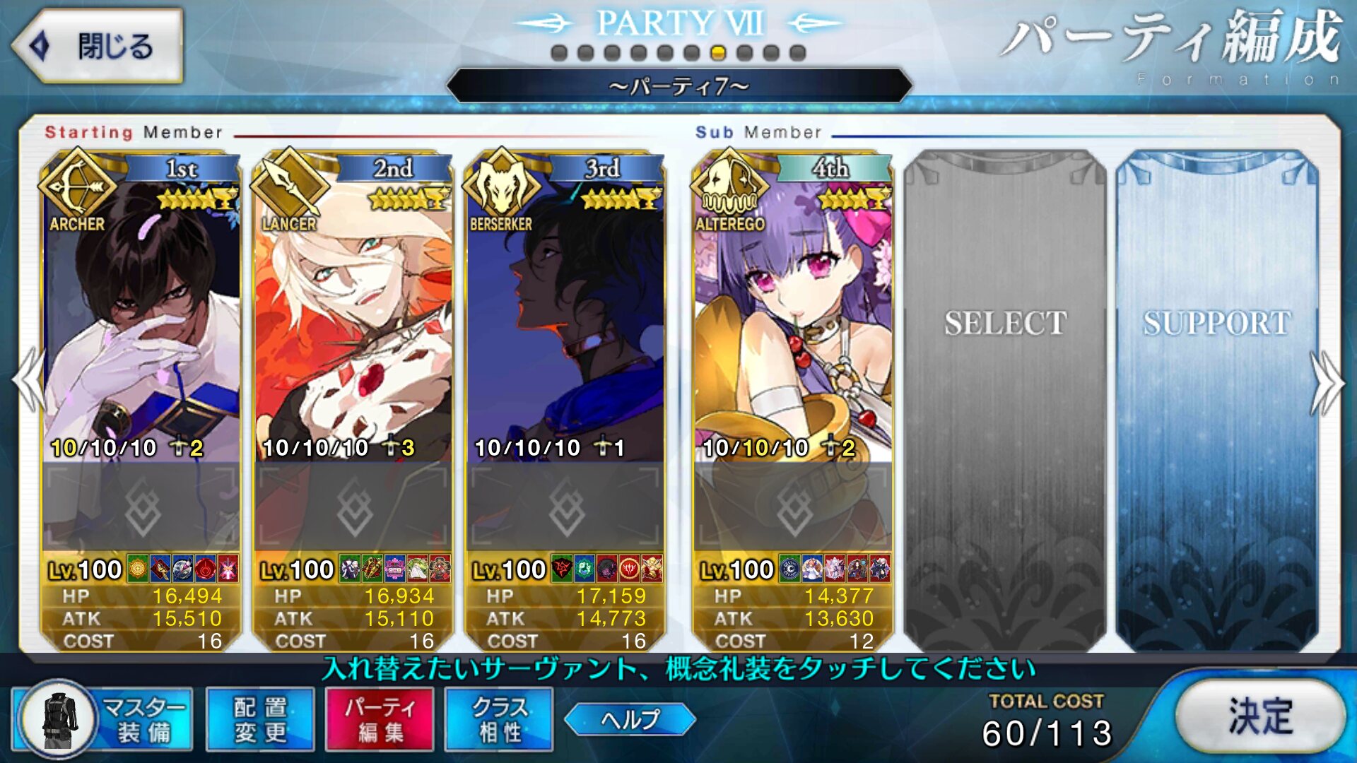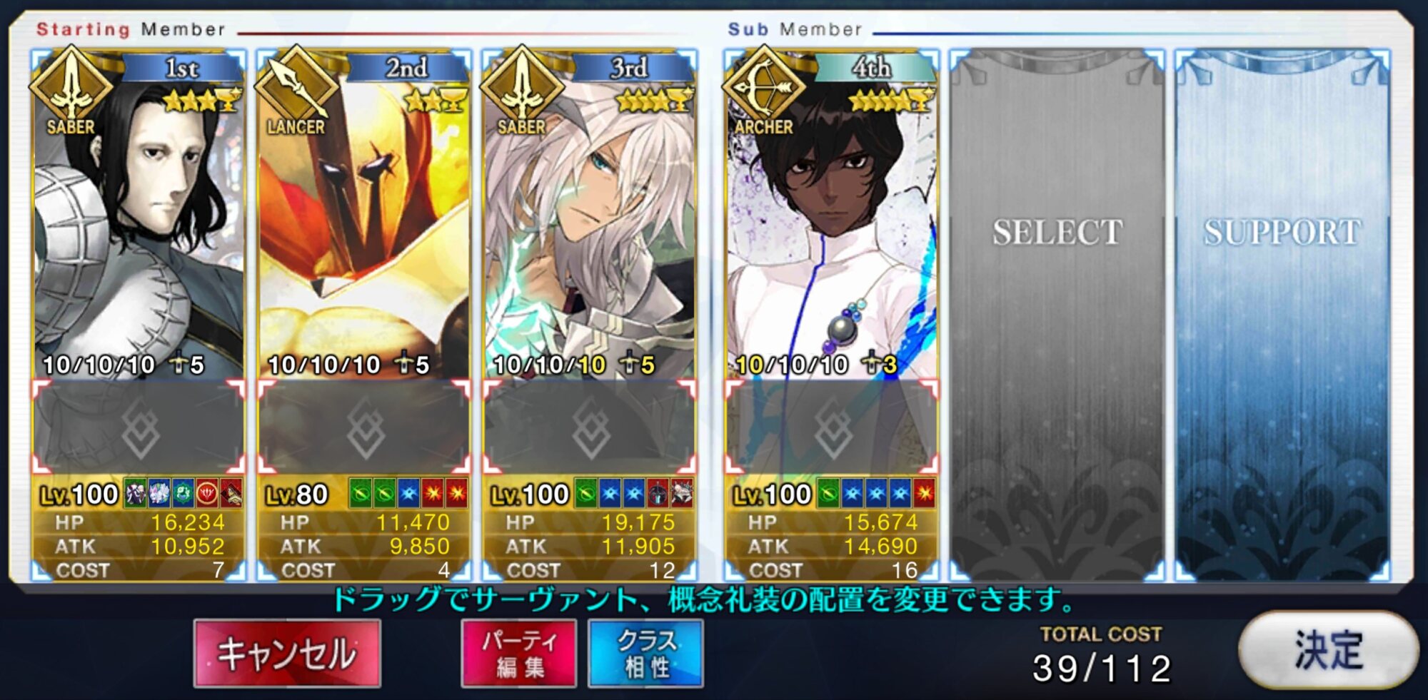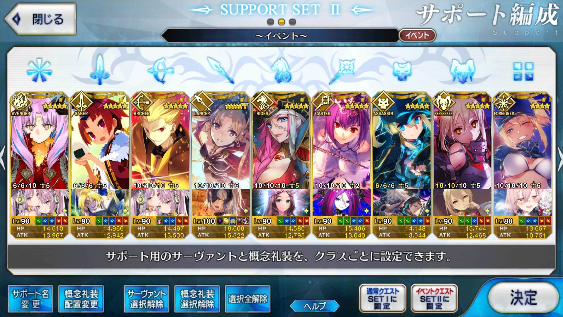 キャスターのサポートはどうするかいつも悩む。需要敵にはカルティー孔明だけどマーリン借りたい人もいるだろうし、初心者マスター用にアタッカー置くべきなんじゃ、という気もする。>>892