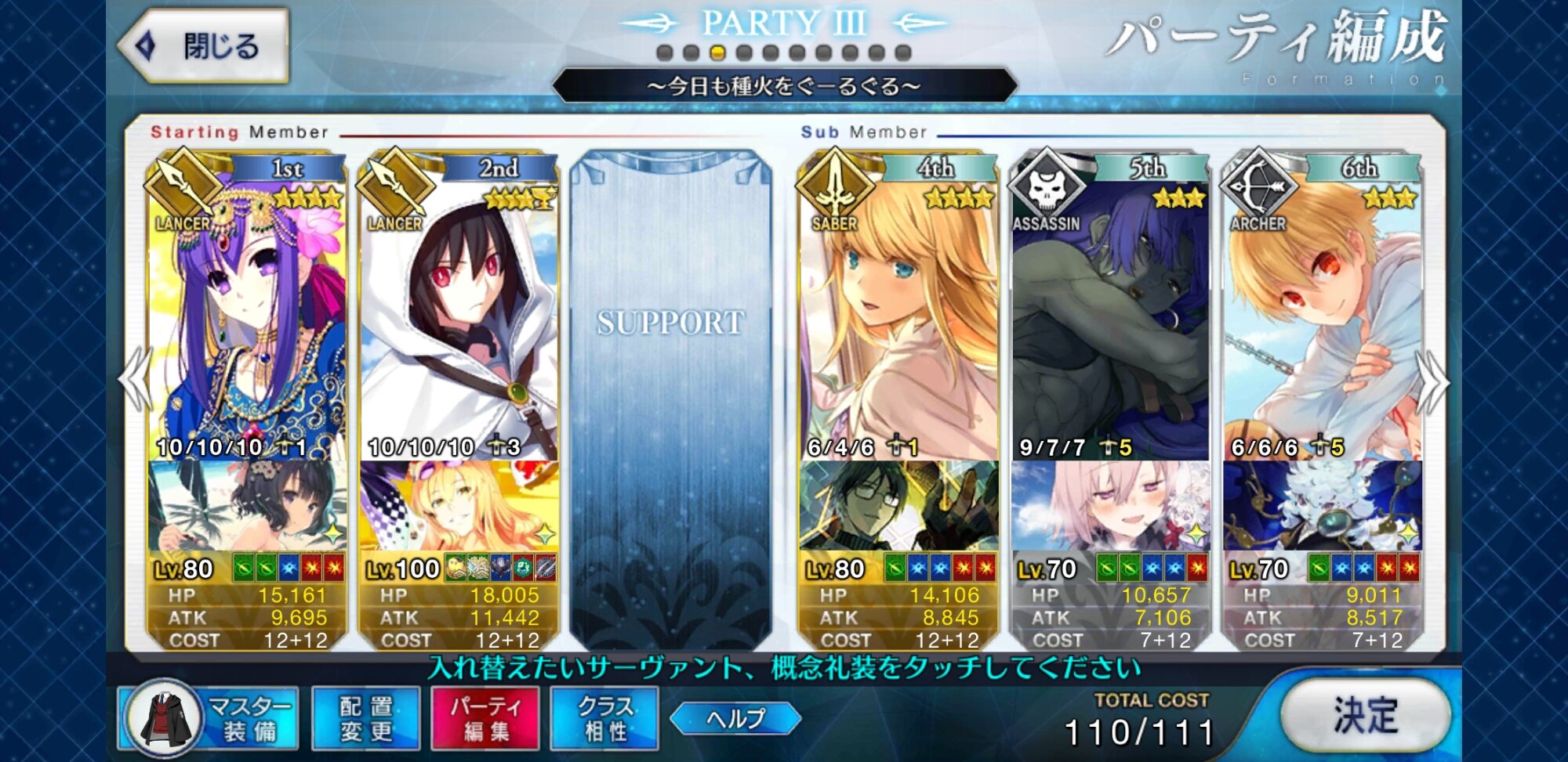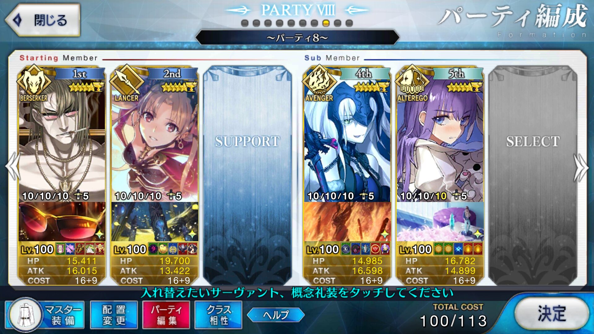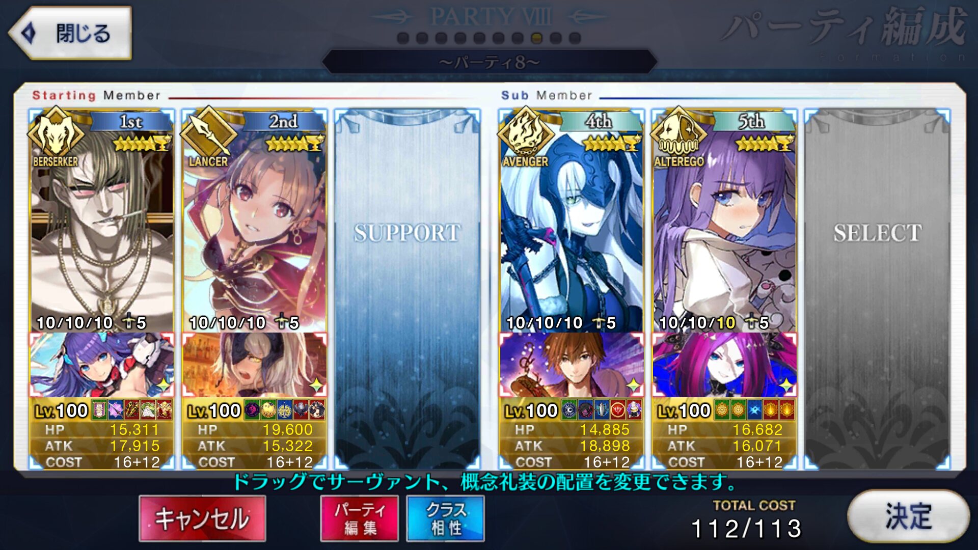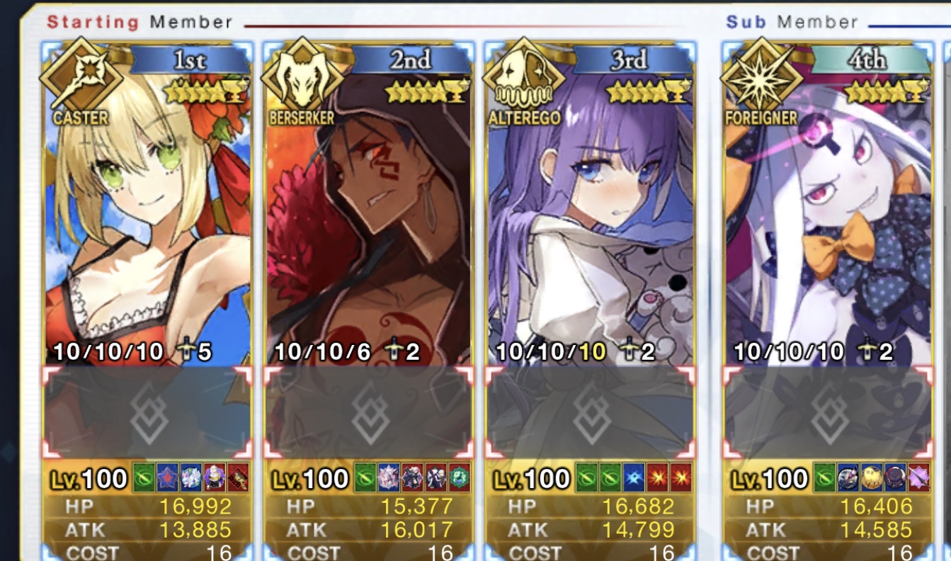 キャスターのサポートはどうするかいつも悩む。需要敵にはカルティー孔明だけどマーリン借りたい人もいるだろうし、初心者マスター用にアタッカー置くべきなんじゃ、という気もする。>>892