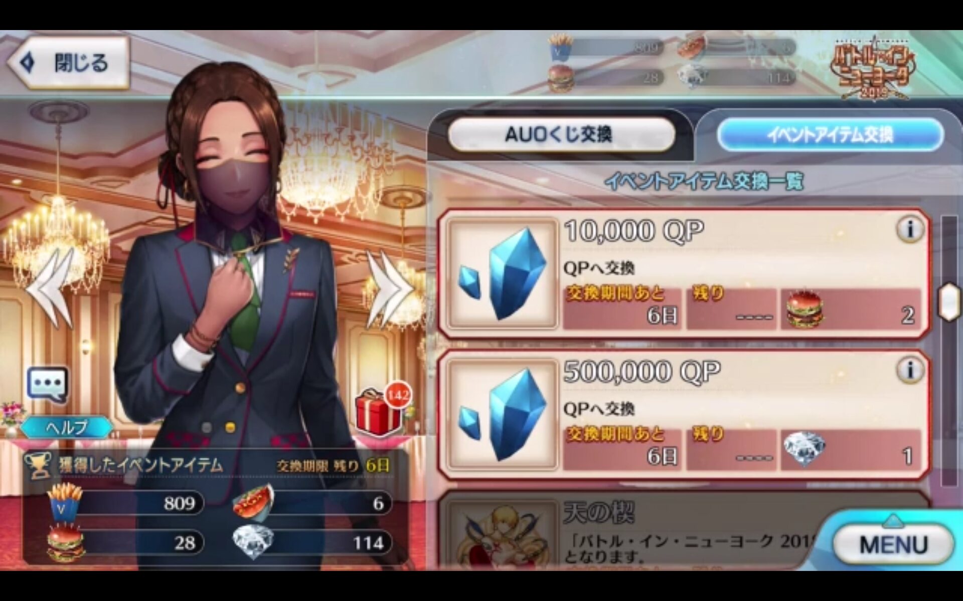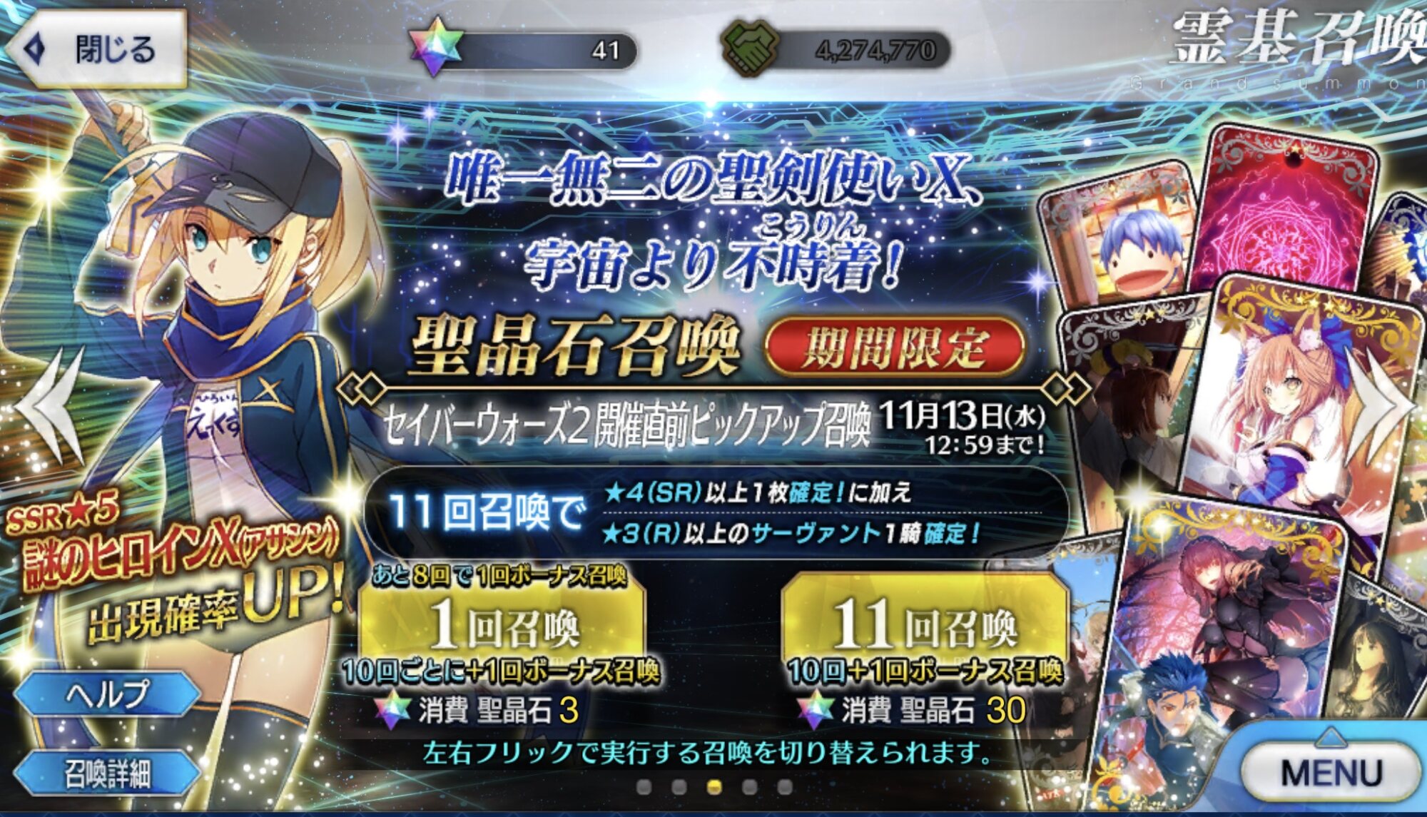 そんなこんなでちょっとまだ「わー、ふわーー、でもちょっとメリィともこういうことしたふわーーー」となったままにスタミナを溶かしに行ったわたしを待ち受けていたのはいつもと全く変わらず凛としたうち最古参組の一人である青色がトレードマークなセイバーだった。