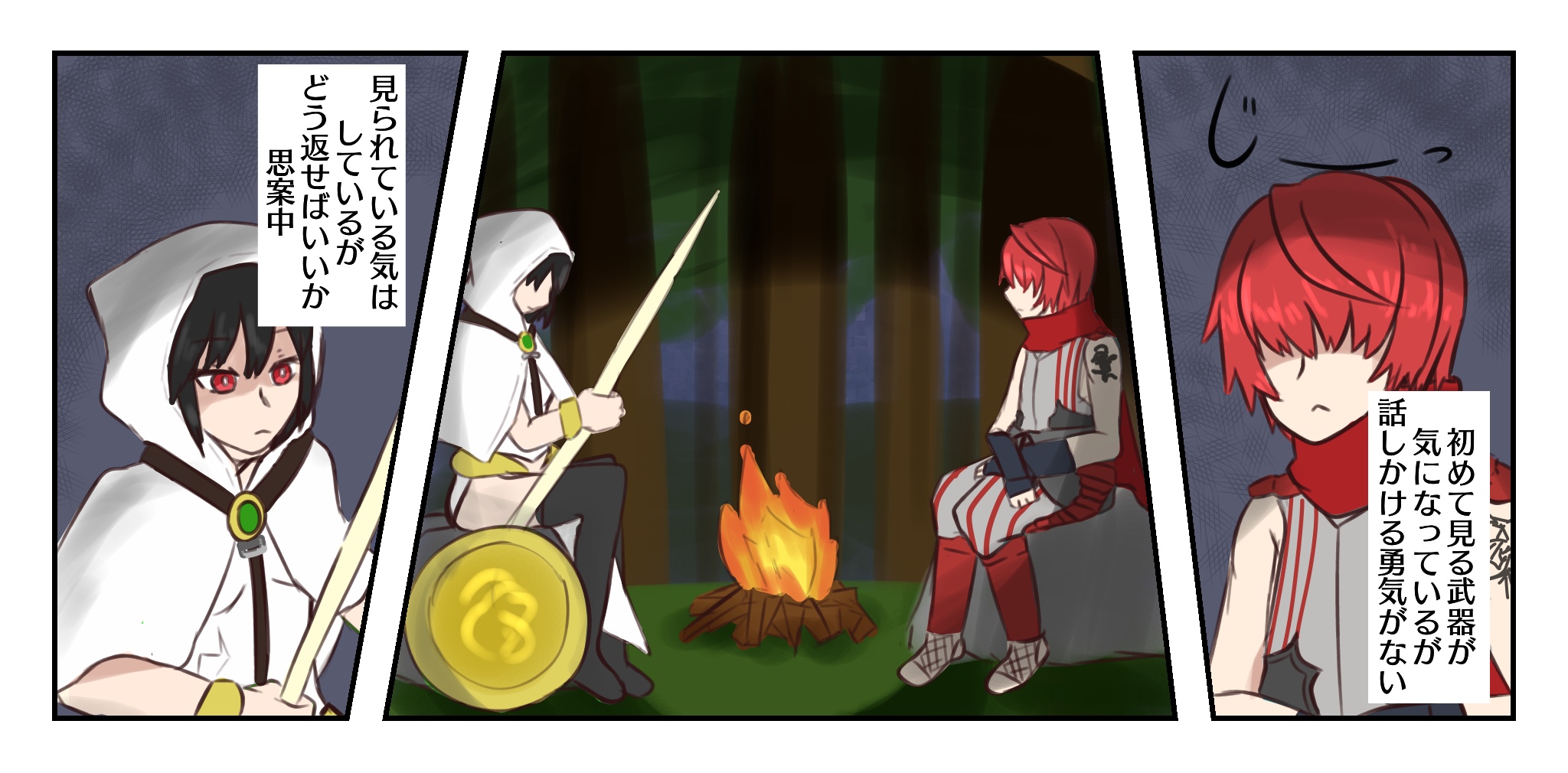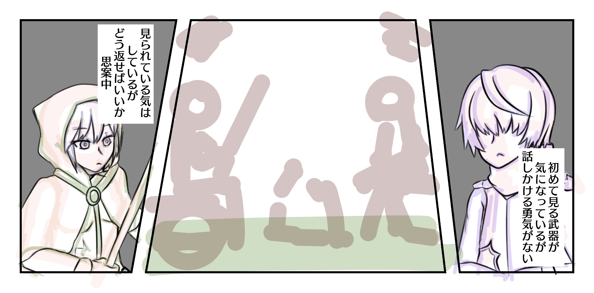 なんかマスターと離れて行動してて(偵察辺り?)一緒になるけど会話がうまくできないオルトリンデと小太郎くんかぁ…