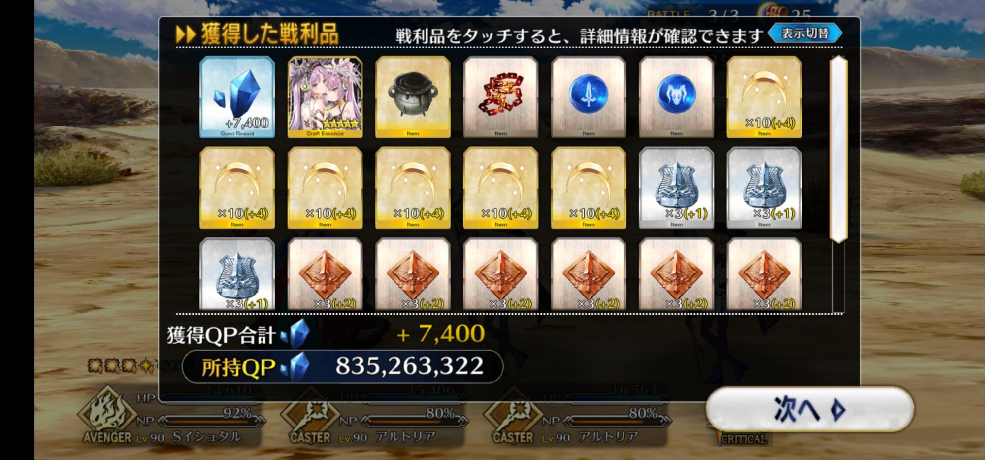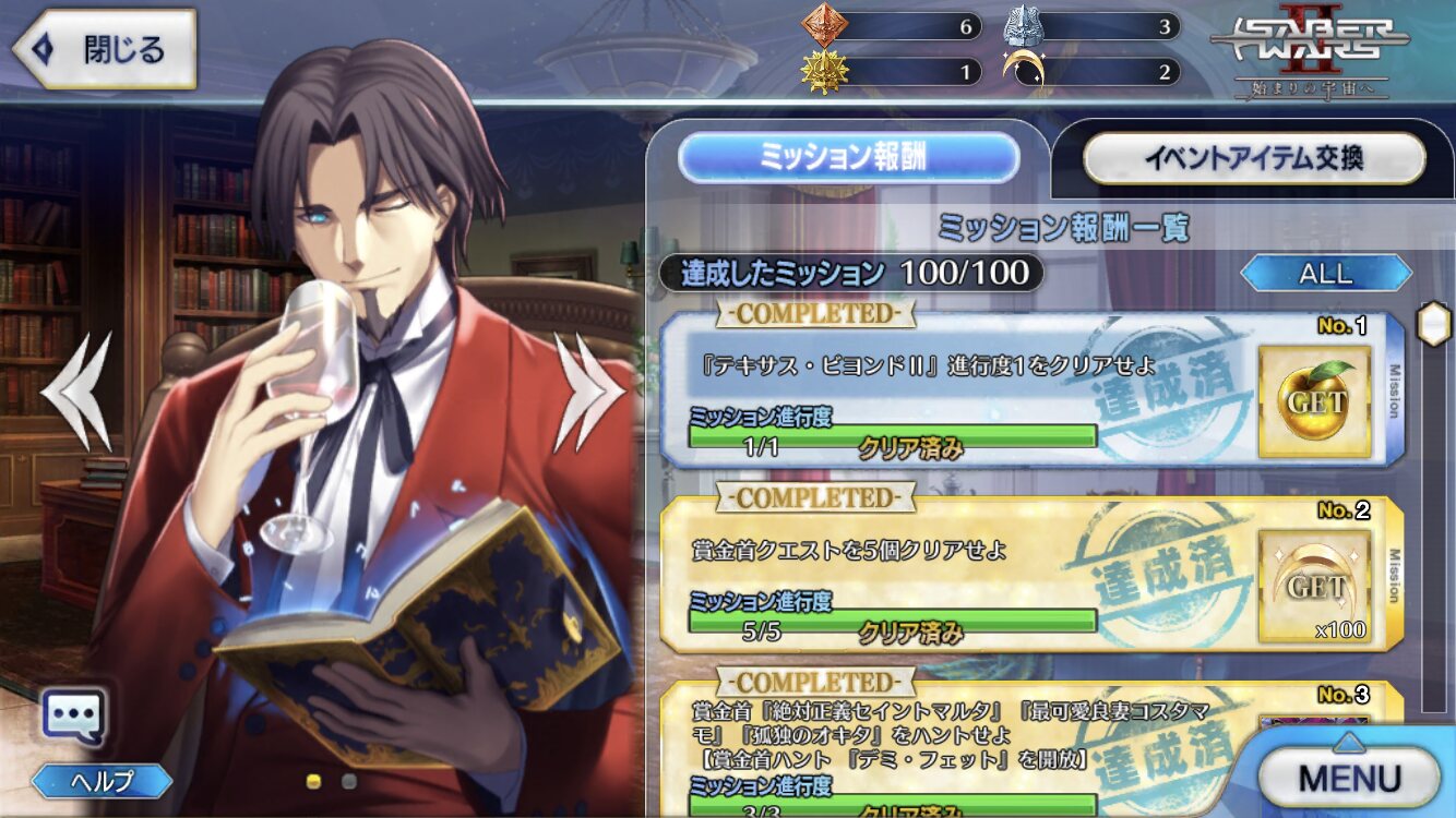 あの手の運ゲー高難易度は真面目に付き合わずギミック理解したら令呪バンバン使ってさっさとゴリ押すに限る。クエスト全部終わったからあとは交換アイテム集めるだけだ…