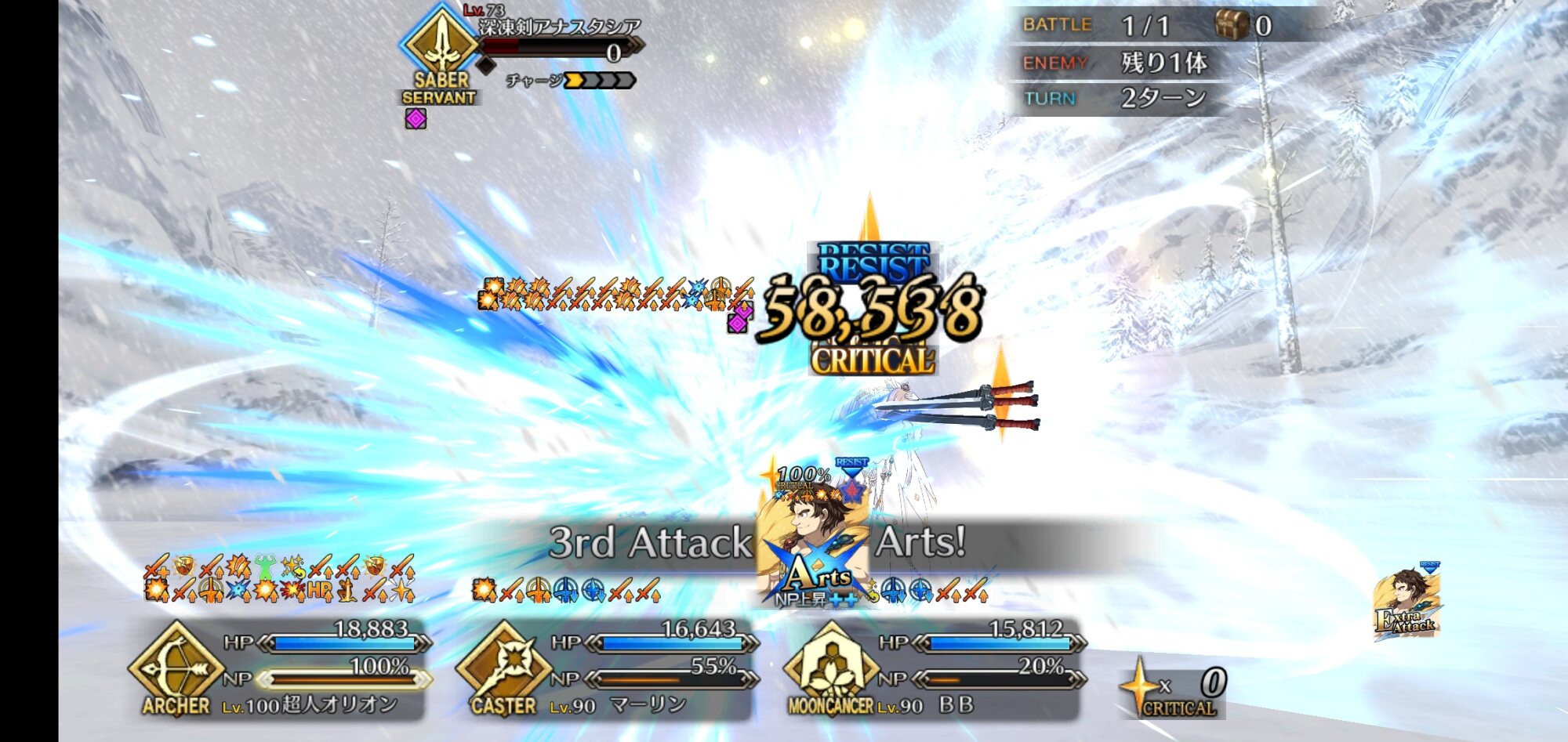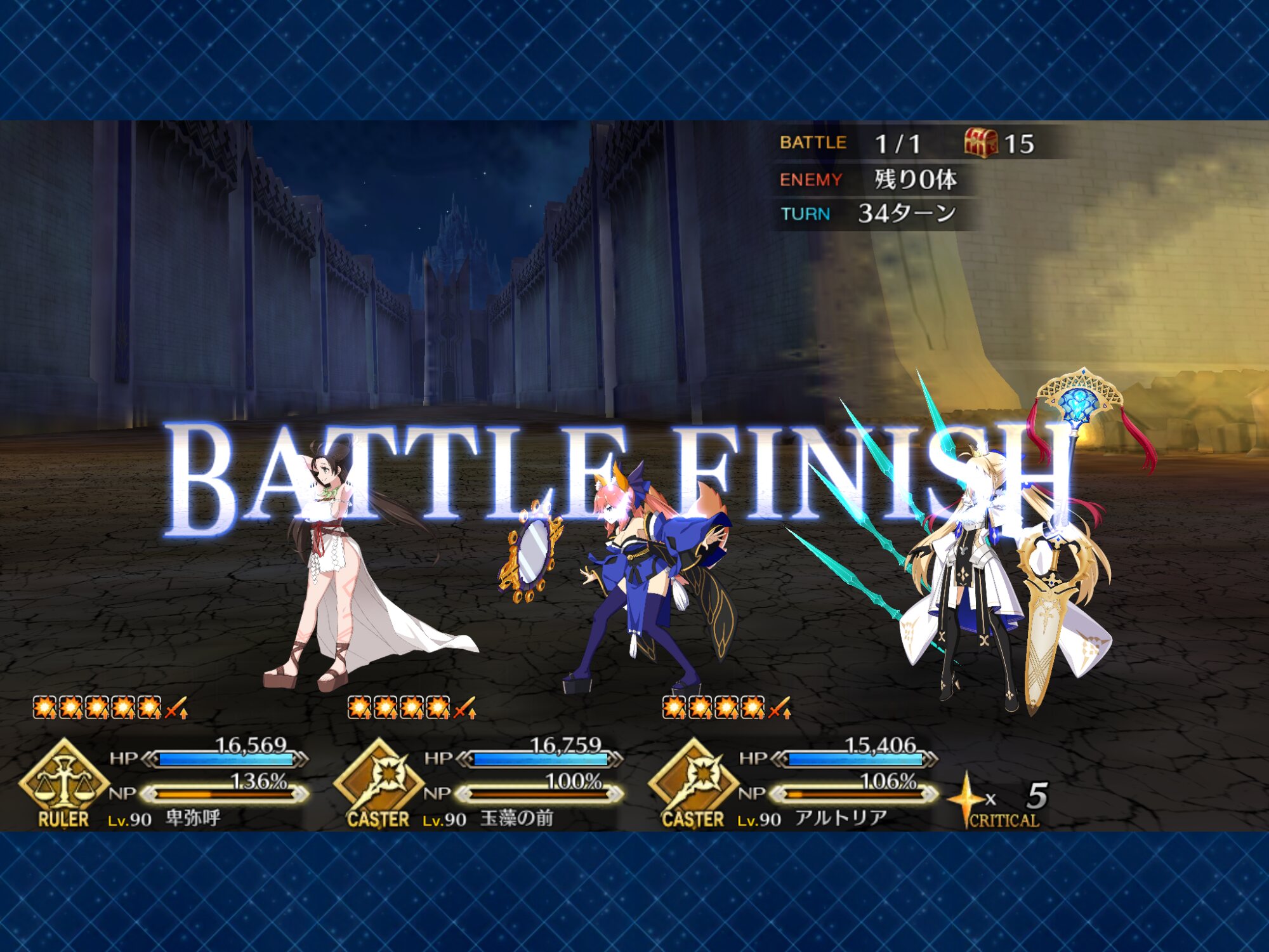 前回達成できなかったノー令呪ノー石を果たせたのでヨシ玉藻とキャストリアが揃うと水着キアラは本当にシャレにならんくらい強い