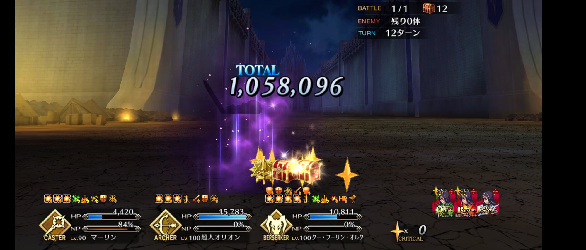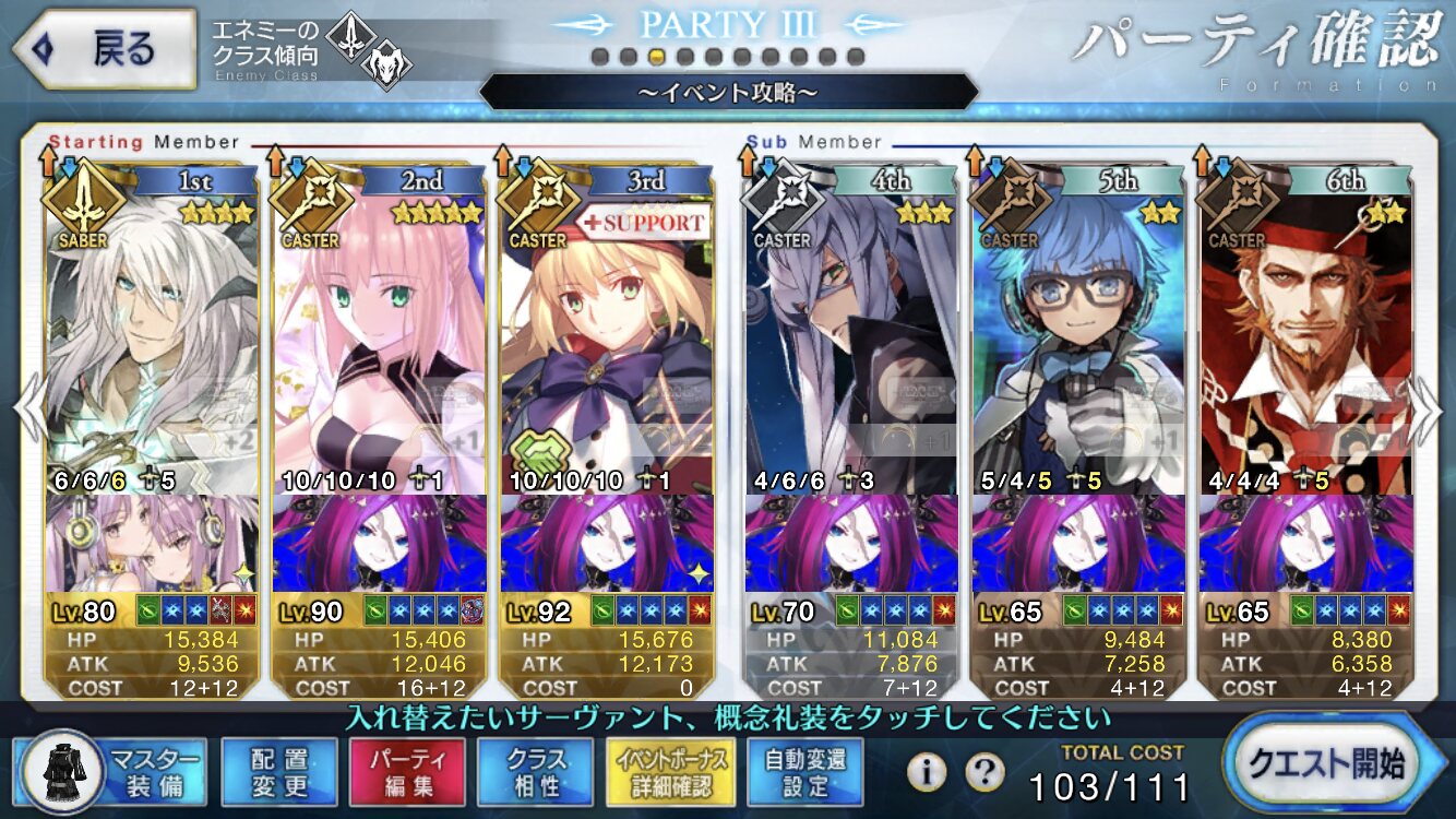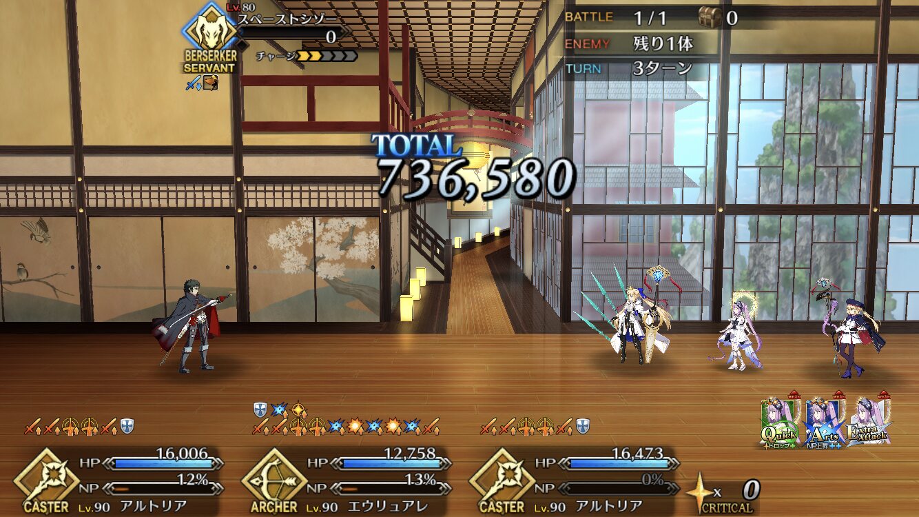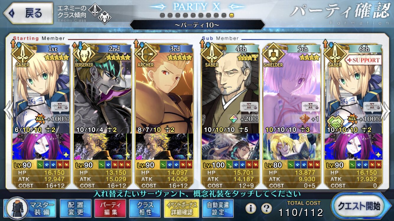 前回は凸カレ装備ホームズ+Wスカディバサスロに令呪でゴリ押しクリアしたエリチャンズが今回は楽に倒せたな。キャストリアと水着武蔵がやば過ぎる。前回よりも特攻礼装を積めるのもあるけど。