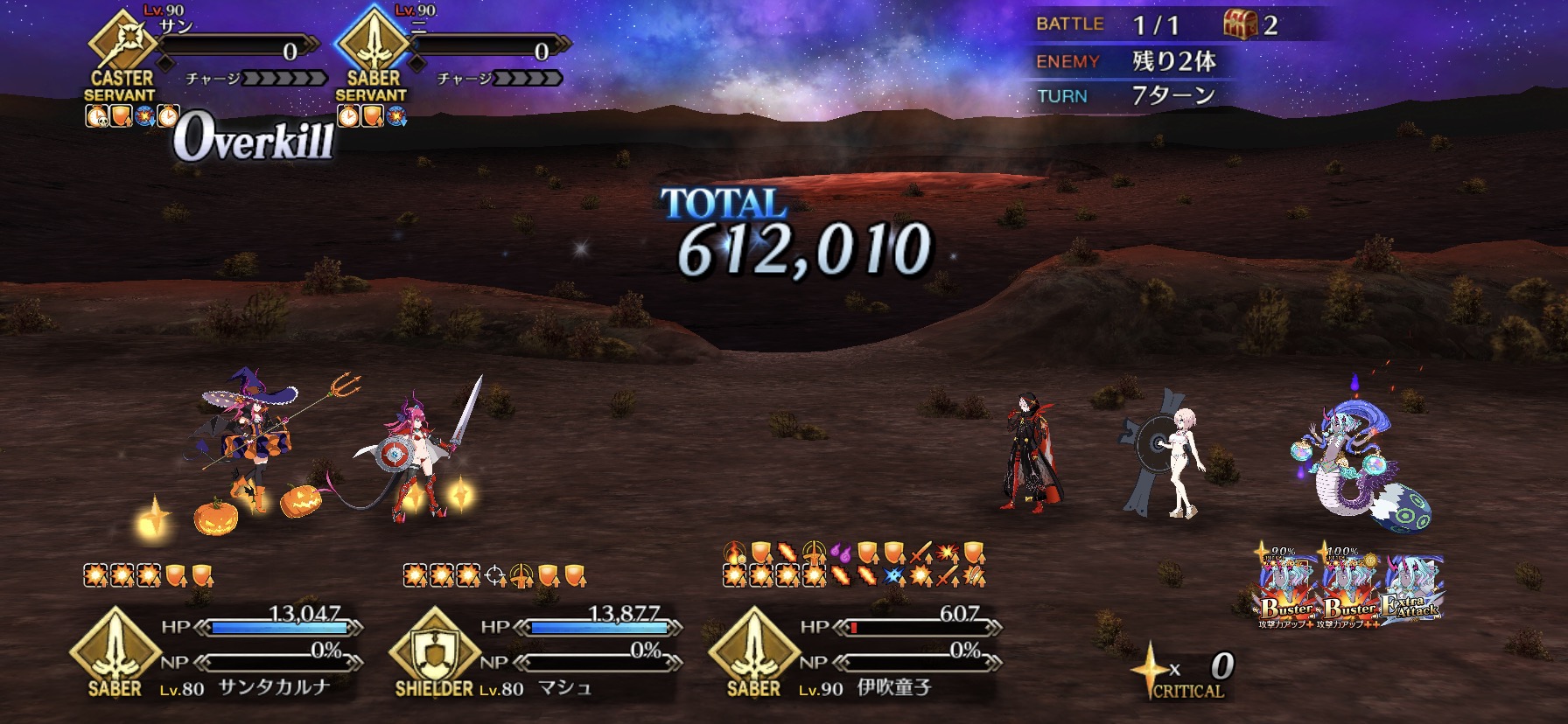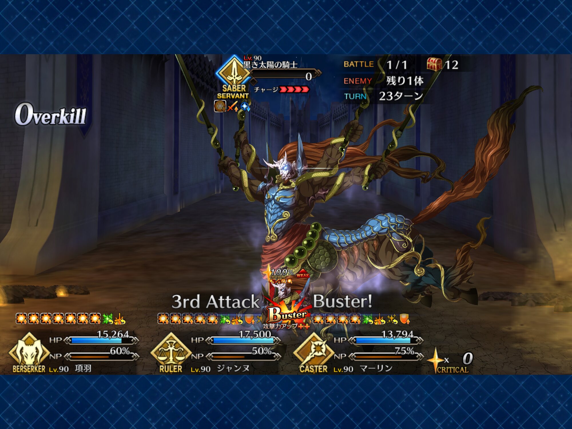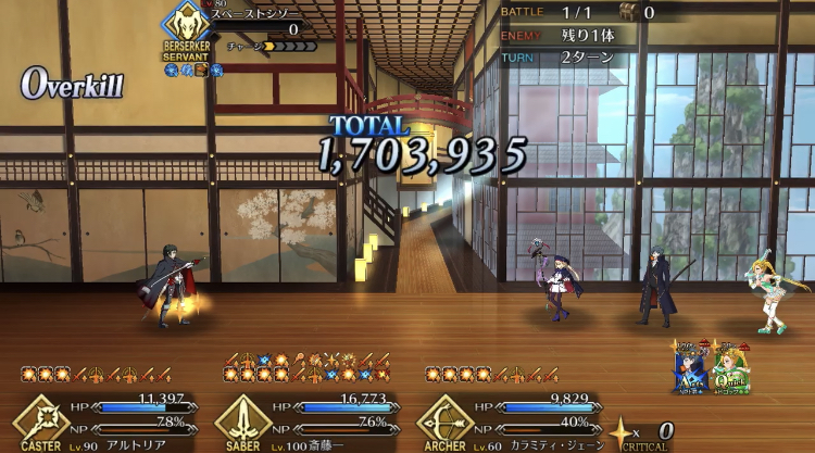 項羽様は宝具1でもバフ乗ってれば50万消しとばしてくれるのは素晴らしい。