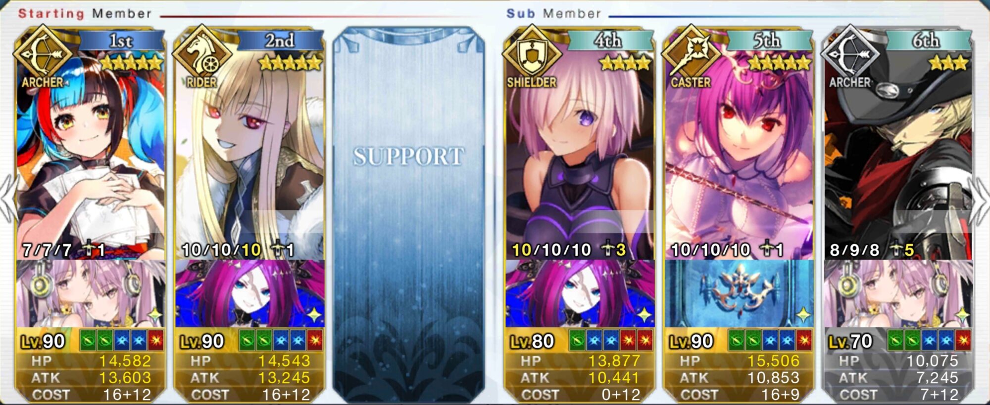 あとマシュとゲオルギオス先生は宝具対策(ガレスちゃんの無敵貫通怖い)とブレイク後陣形崩せなかった時対策なんで外すのキツいです……