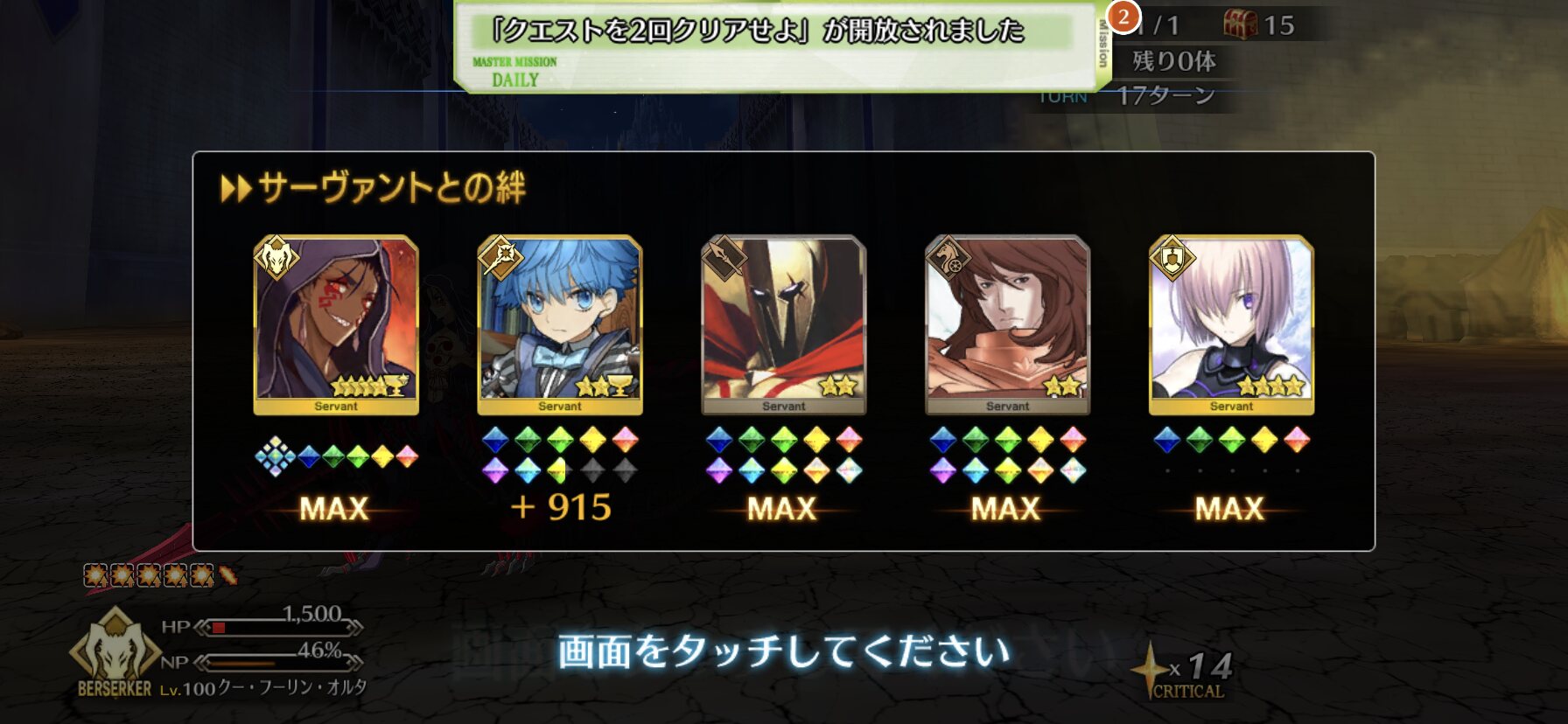 石一つと令呪二つでようやくラウンズ突破。疲れたもおおおおん