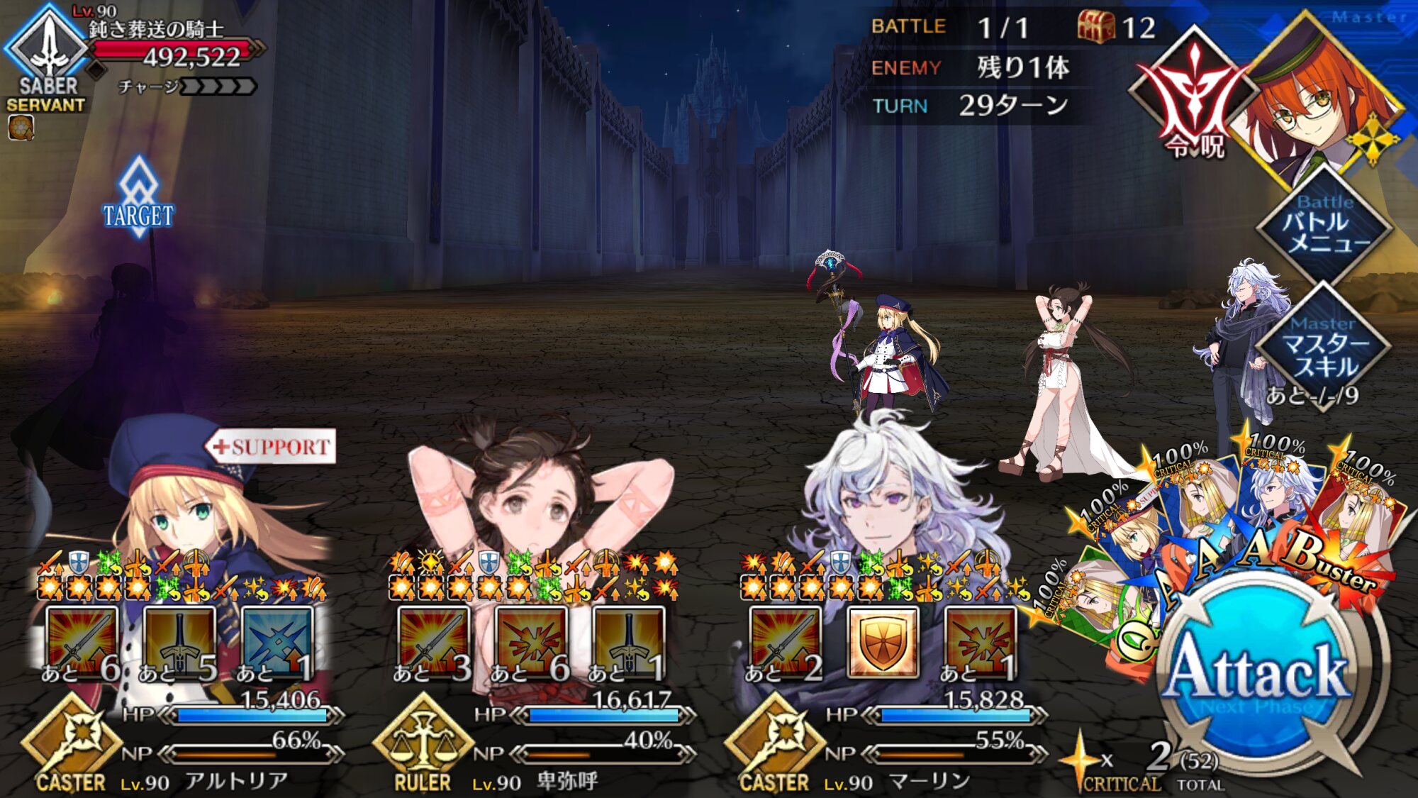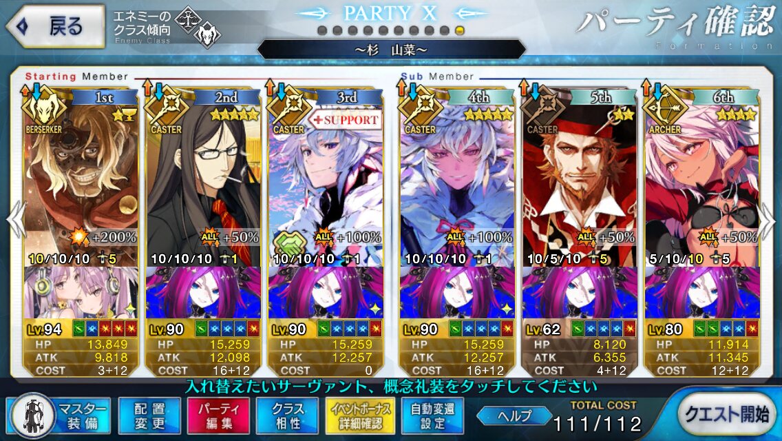 とりあえずフレンドからSタル借りていけばいいかな…?卑弥呼マーリン術トリアで行けば楽勝やろって思ったが