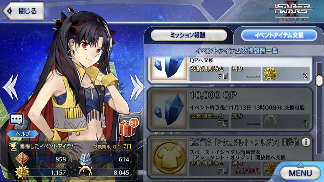 あとルーラーなので耐久も良いそうか今回のはアルトリウムでqp稼げるからイベント終了まで粘るメリットもあるっちゃあるのか