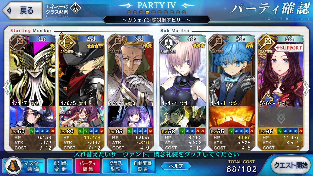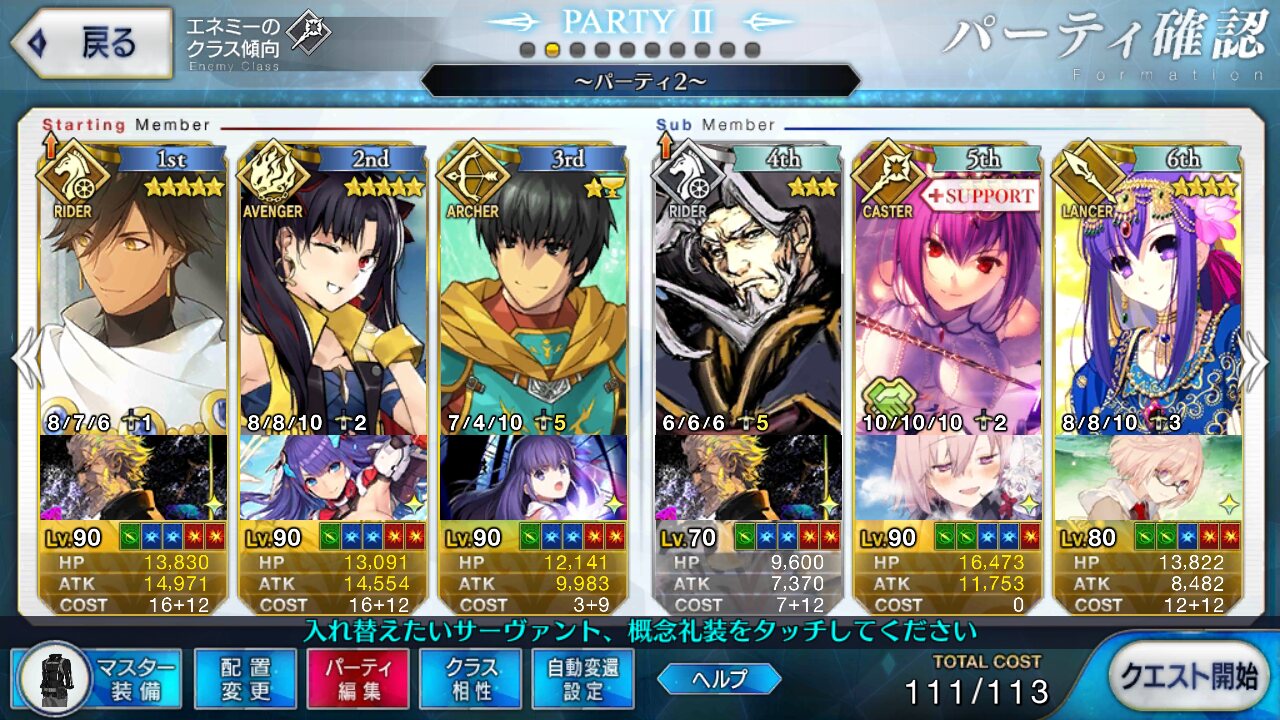 雑魚は絆スカディ、ちょっと強そうなのは狂アルジュナ、あとはクラス相性で選ぶくらい>>916