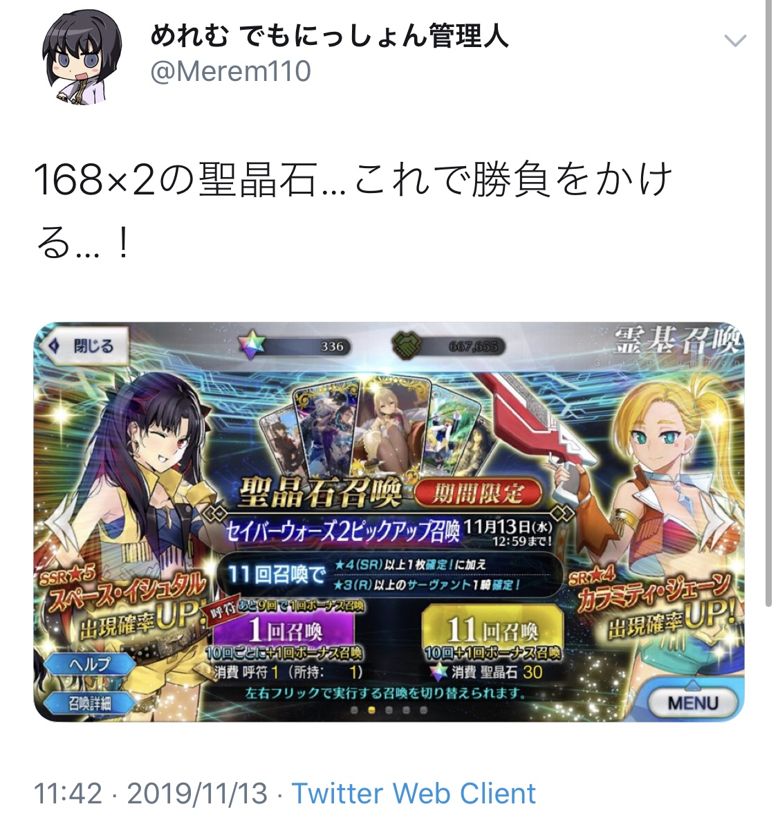 メルトは最終的に召喚できたけど、今回はそれすらないからな…>>874
