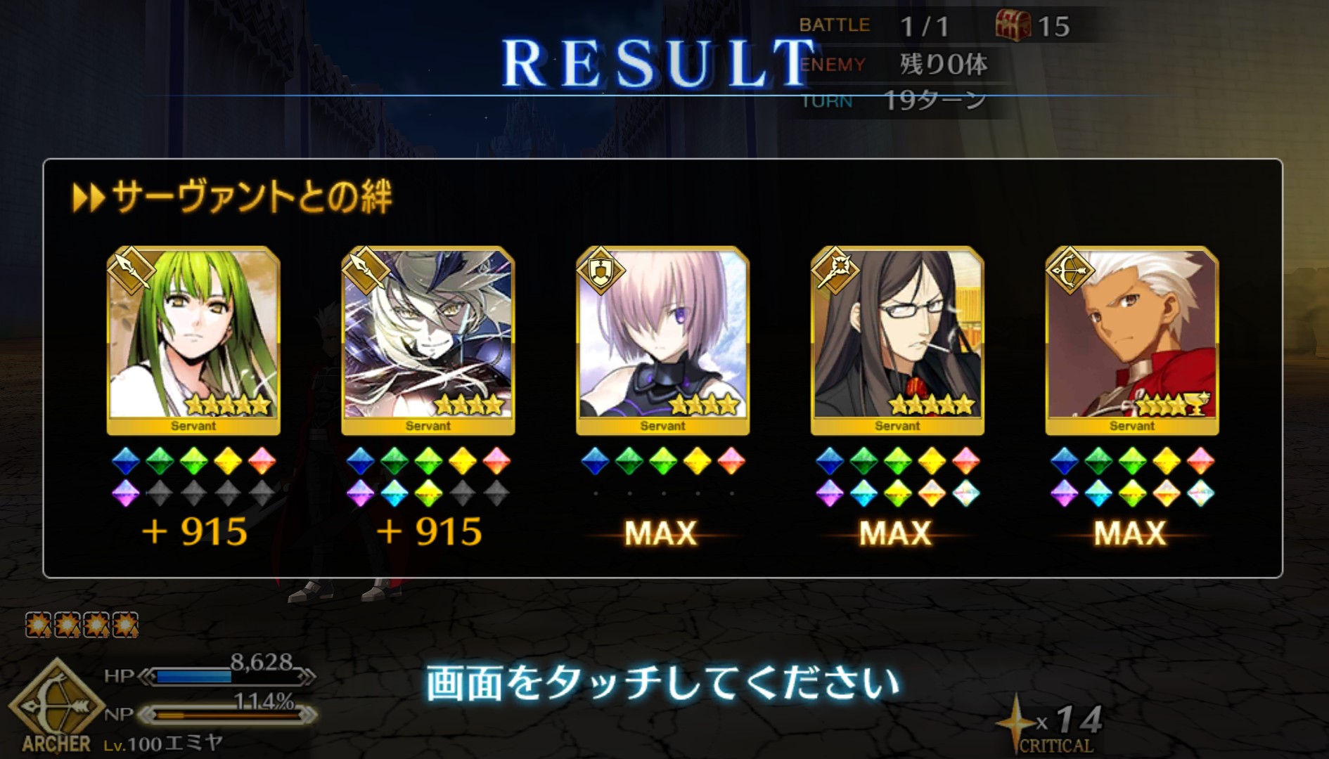 久々にパーフェクトエミヤん無双を拝めたのが感慨深い。6章ガウェインでの雪辱、2017メモリアルとこれで十二分に果たせたろう。FGOサービス開始から不安と戦いながらシグルド実装待ち続けたワイ、去年の夏大勝利。(なおガチャ結果は