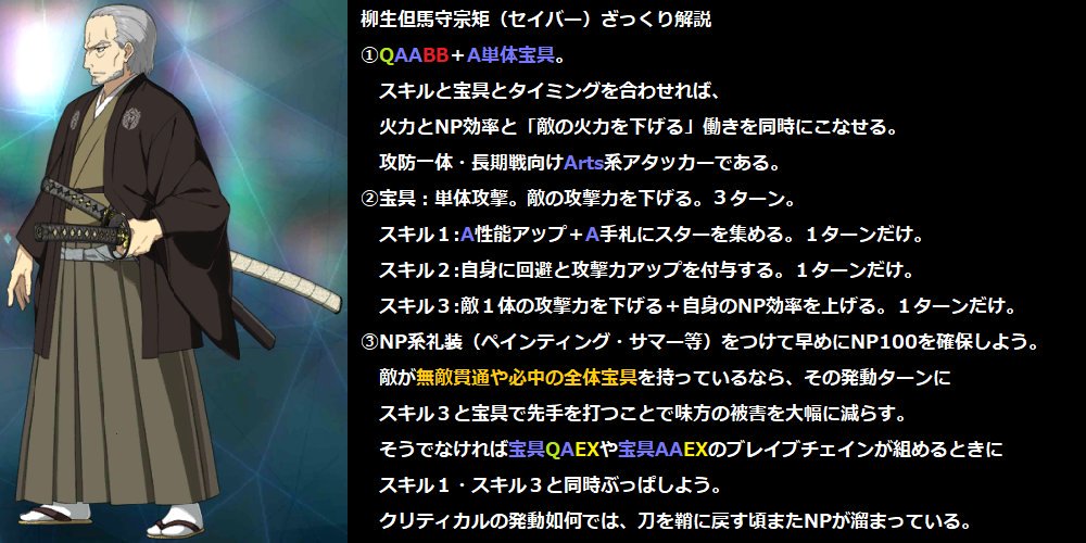 柳生さんは思ったより宝具が回らない(スキルが切れやすい)のと最近の即死級クリティカル相手だとどうにもってのはあるけど準高難度レベルなら完封できるよ - 68名無し2019/11/15(Fri) 23:47:16報告