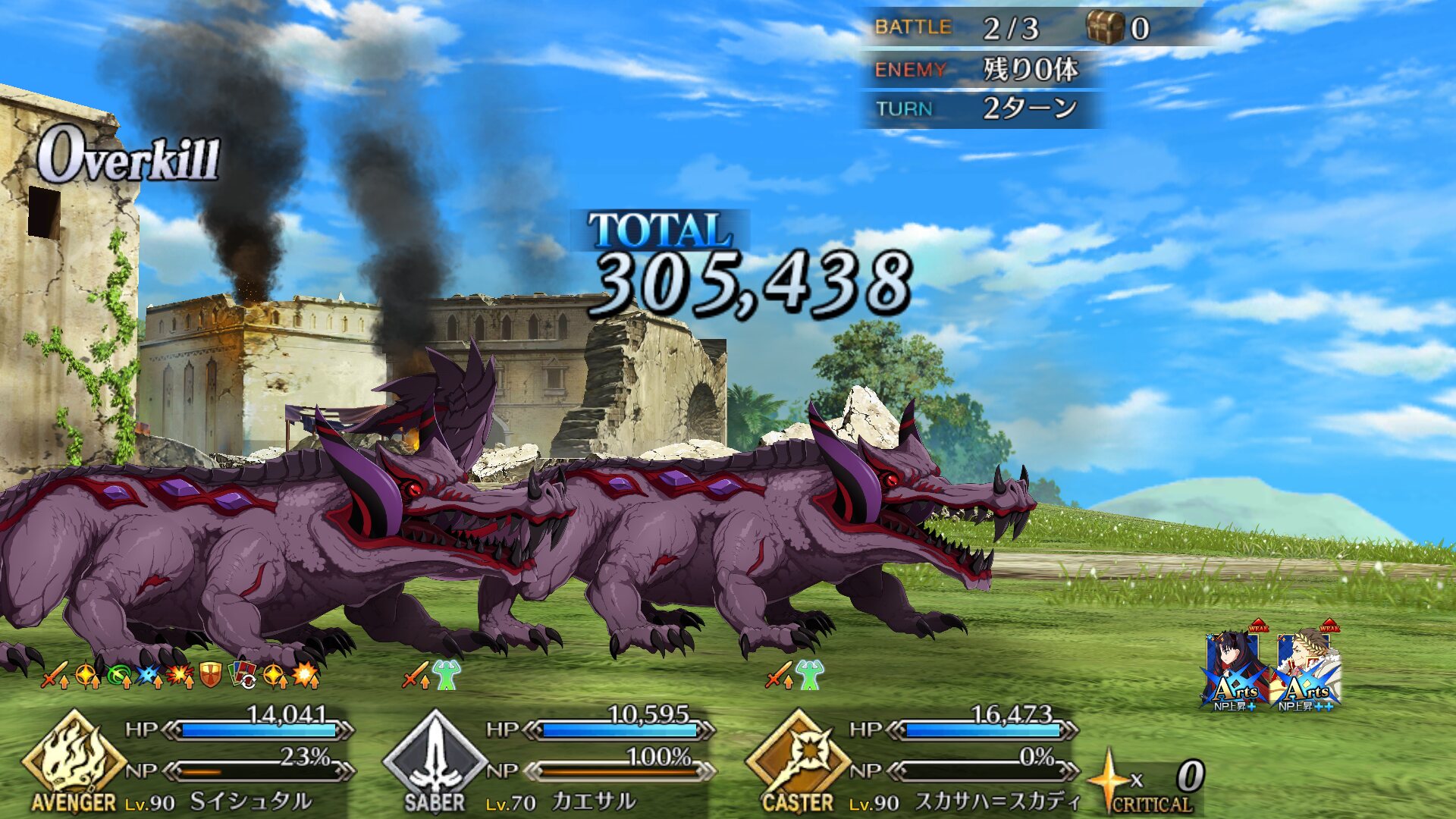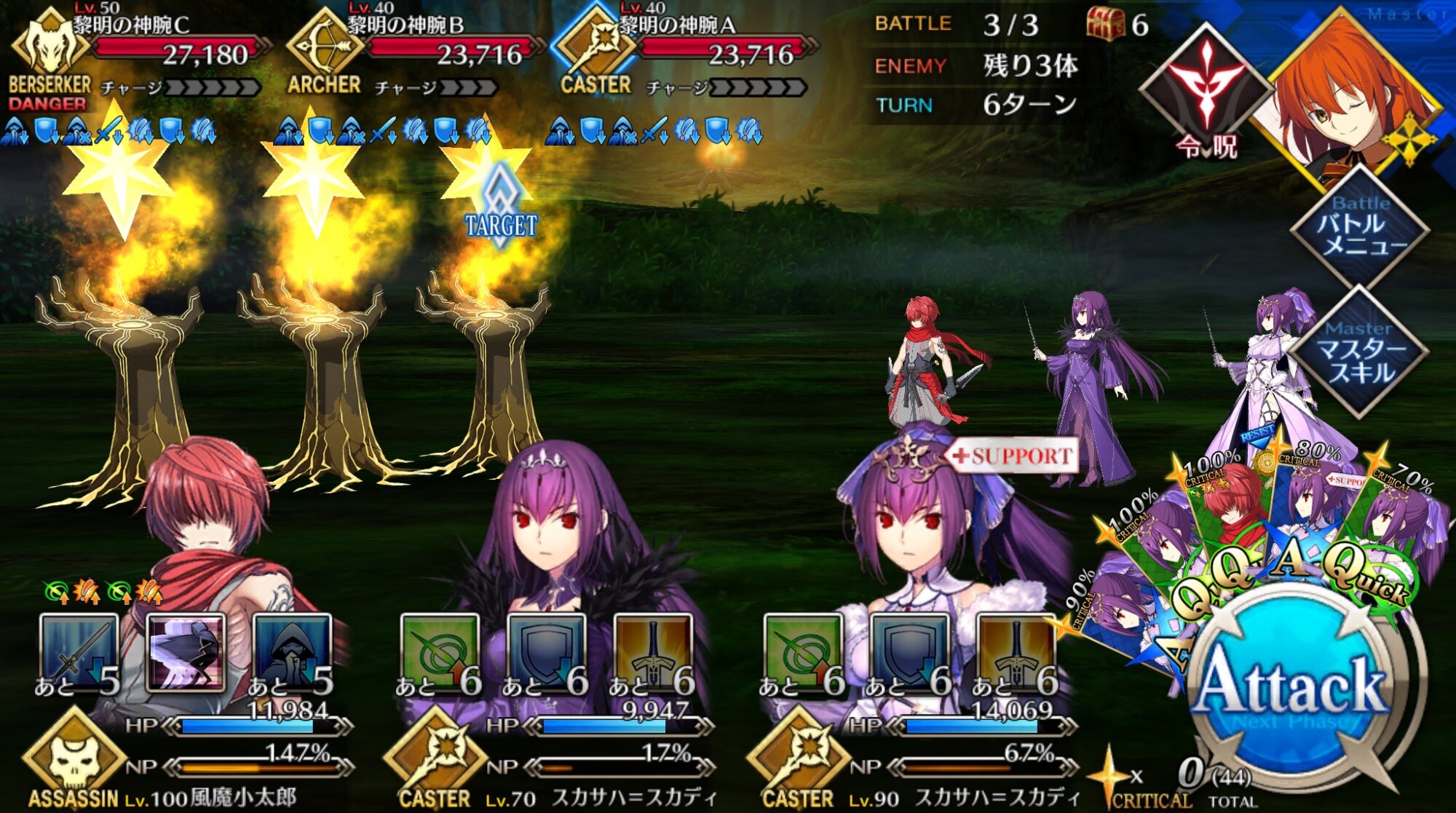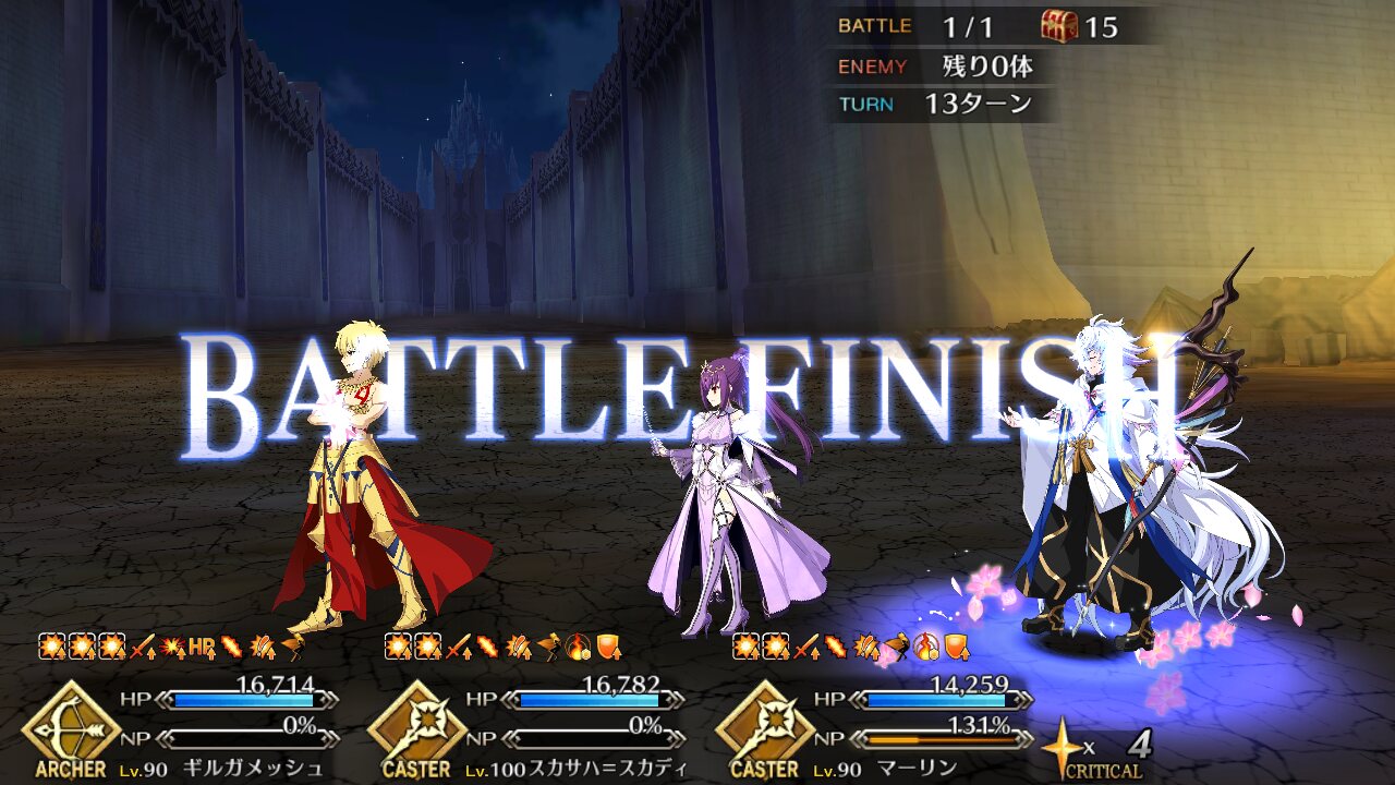 第3スキルはガッツ2回、前述の弱体無効でスリップダメージ対策もできるので単騎時の安定感が増すうえNP+20もある