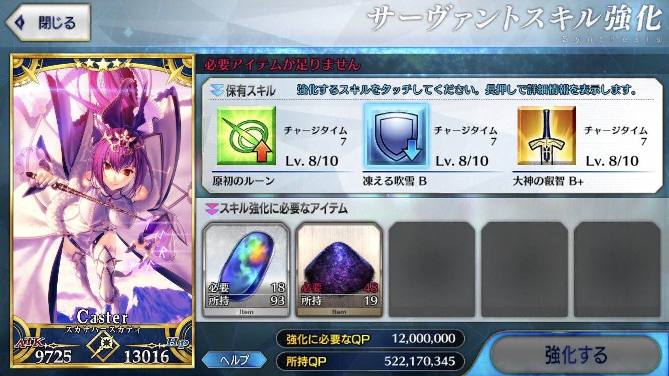 ここガチャ結果は火種になりやすいから基本貼らないってルール知ってた?ごめん、もうオレはスカディを3周年記念で宝具レベル3にしているから……
