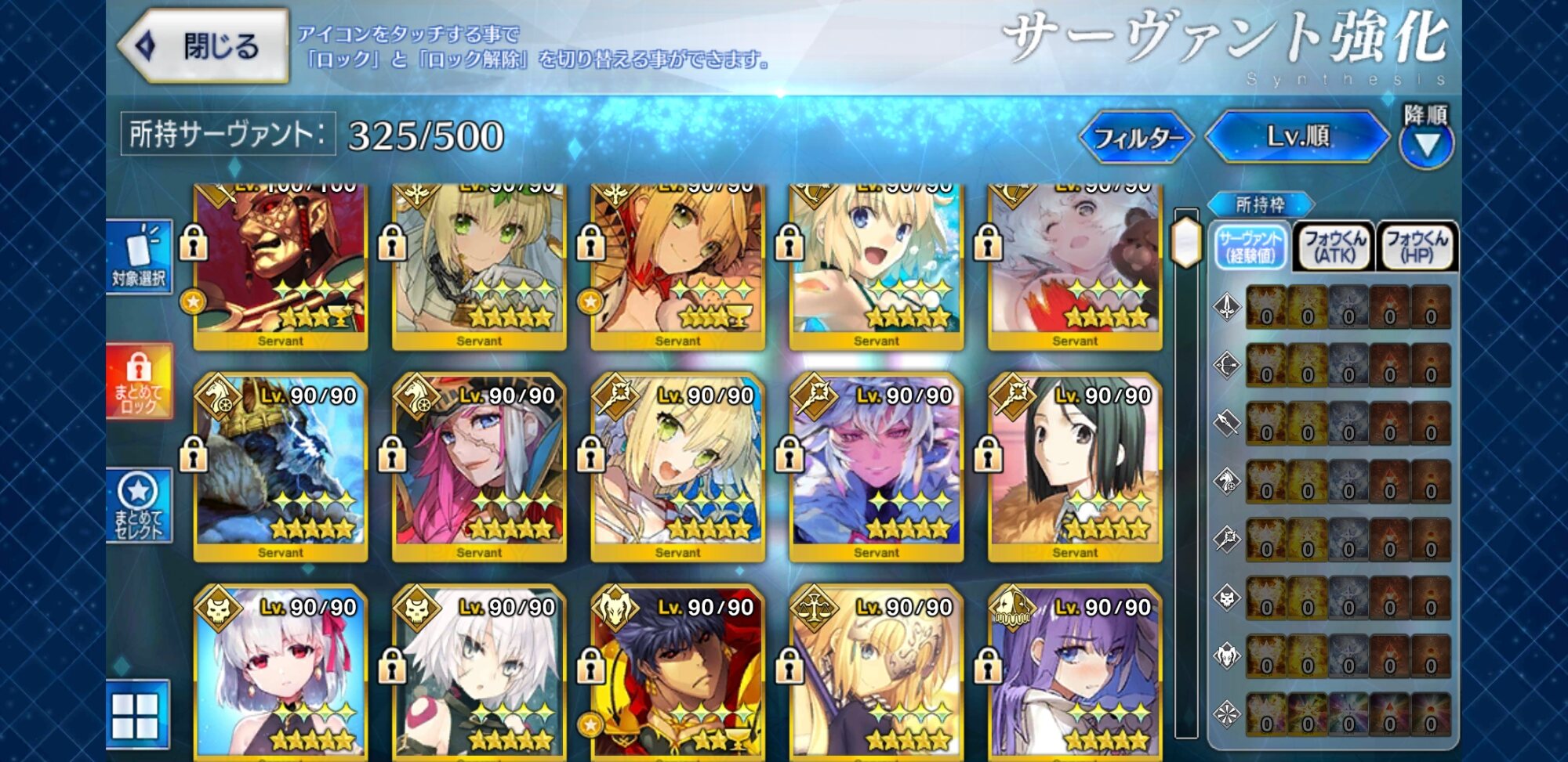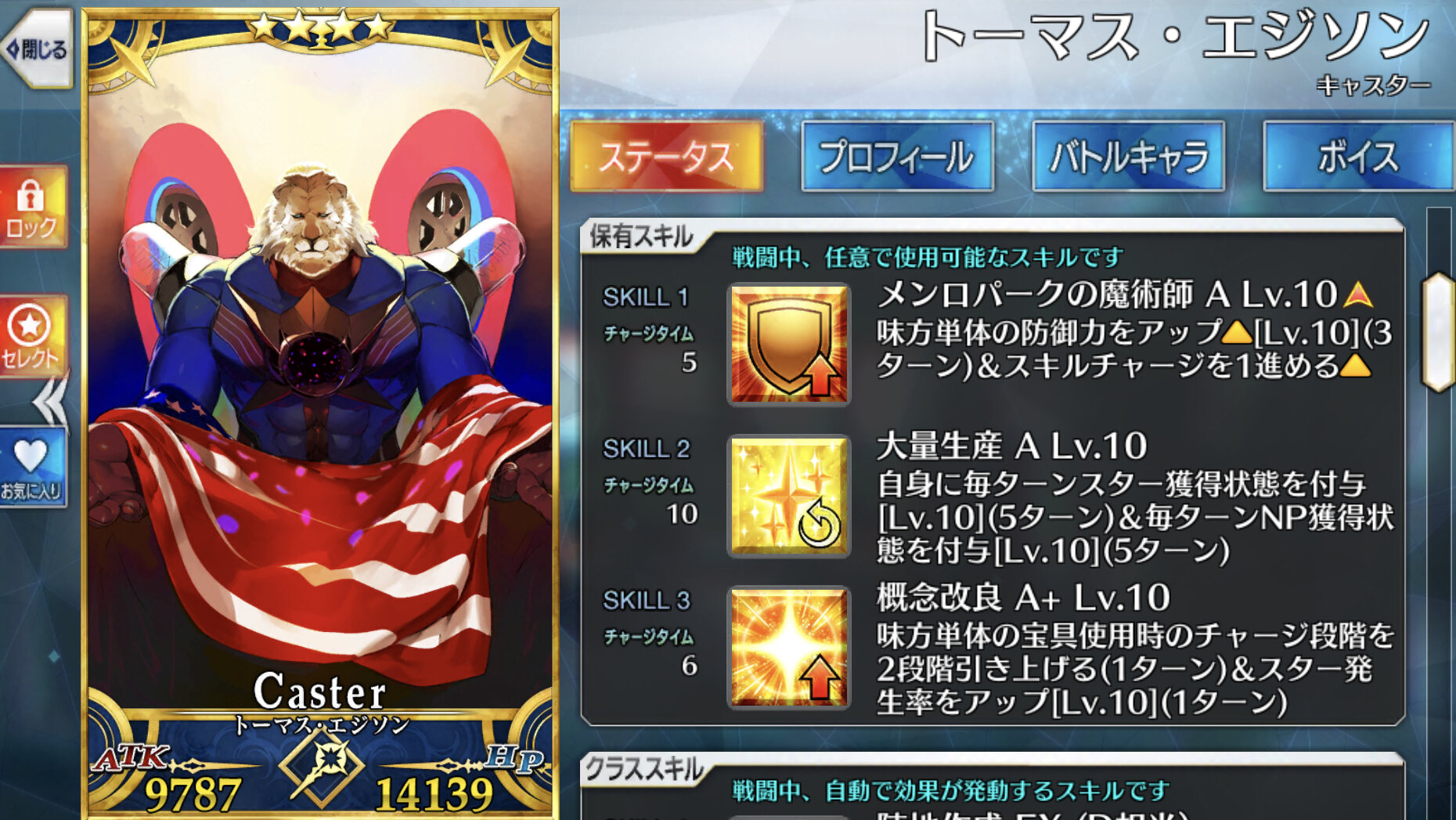 エドモン(黄金率レベルマは必須)やバサスロット(第三スキルレベルマは必須)、宝具レベルはあればあるほどよい