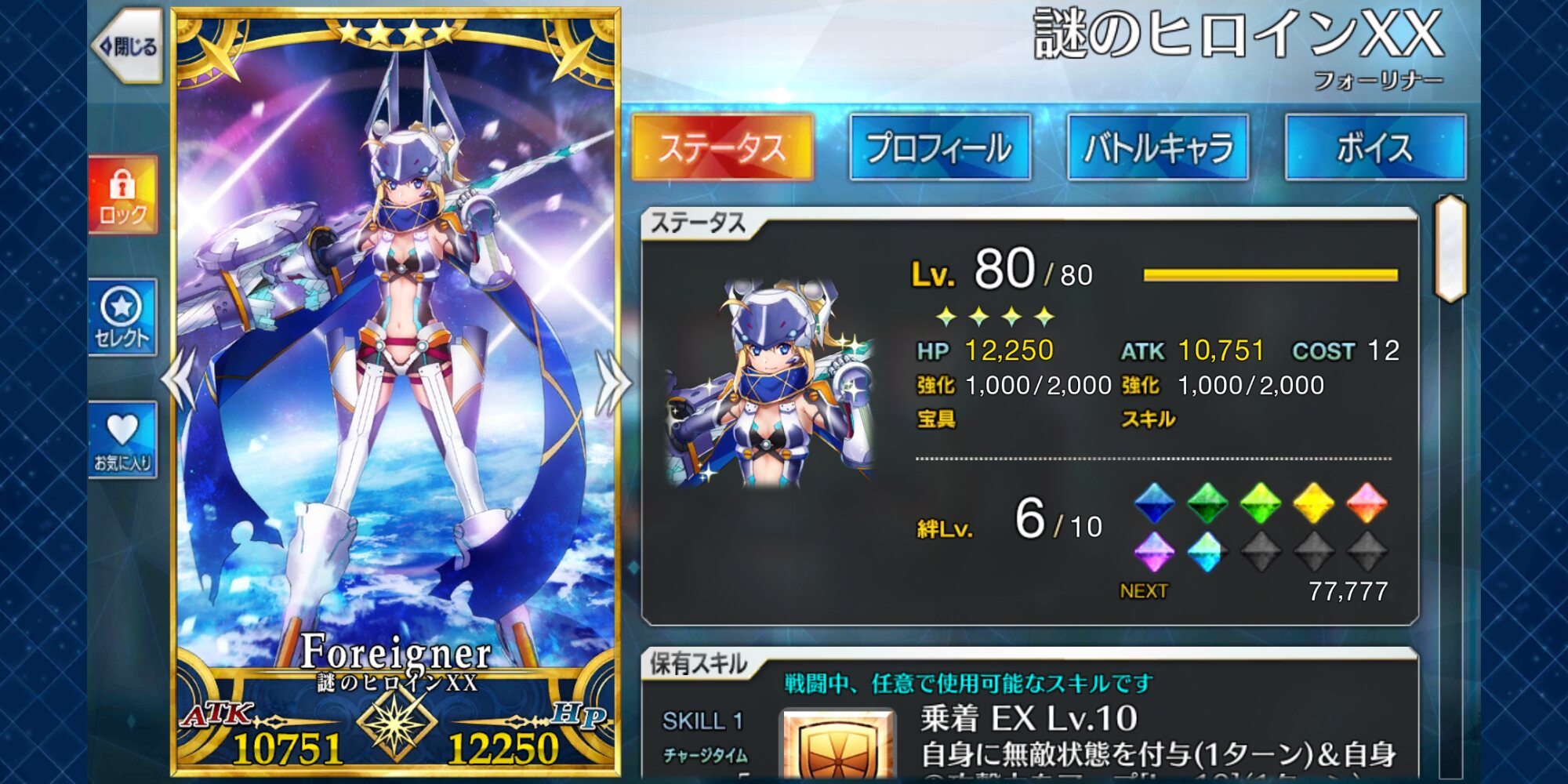 絆ボイスは勿論だが再臨ボイスも素晴らしい…えっ愛が重すぎる?だが意外と聴く機会の少ない凛々しい系下屋さん声と相まって実に破壊力満点だ!