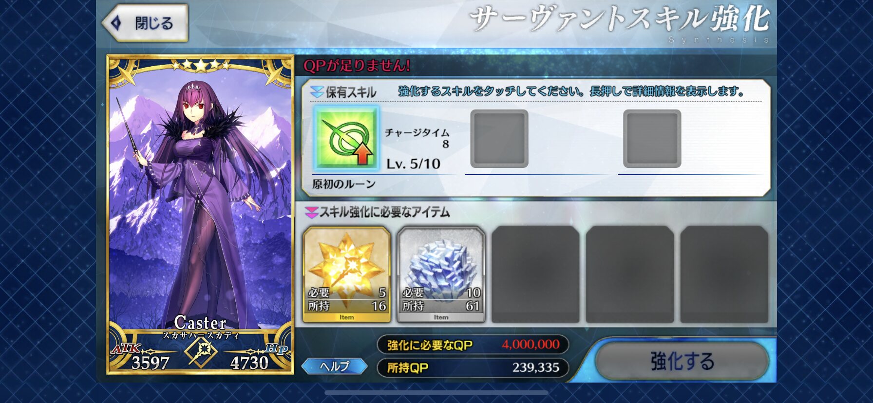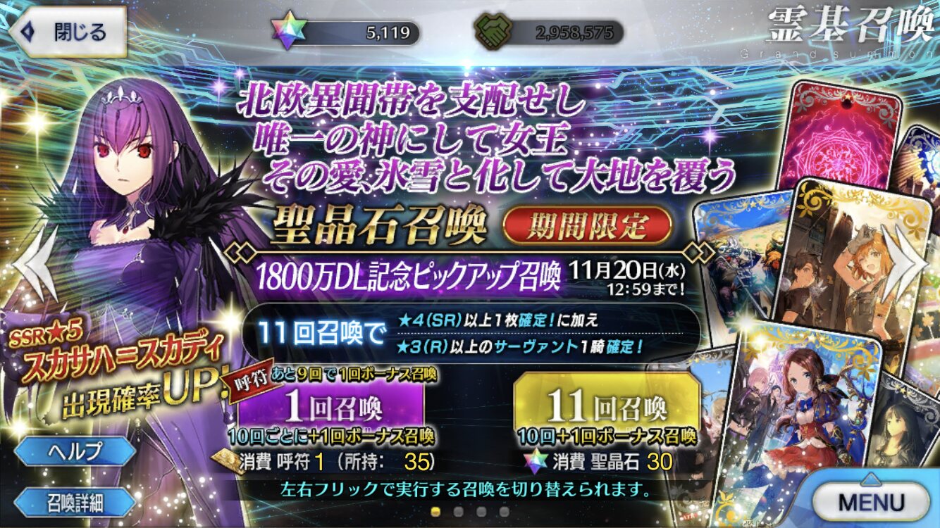 5章ボスがどんだけ強くて可愛くてもスカディはスカディなんだよ!!!スカディというキャラ自体が好き民には関係ないのだよ(爆死したマン並間)スカディおるけど☆5礼装未凸が4枚というこのなんというかな感じで復刻を迎えたけど、まぁ鋼の意志でスルー。