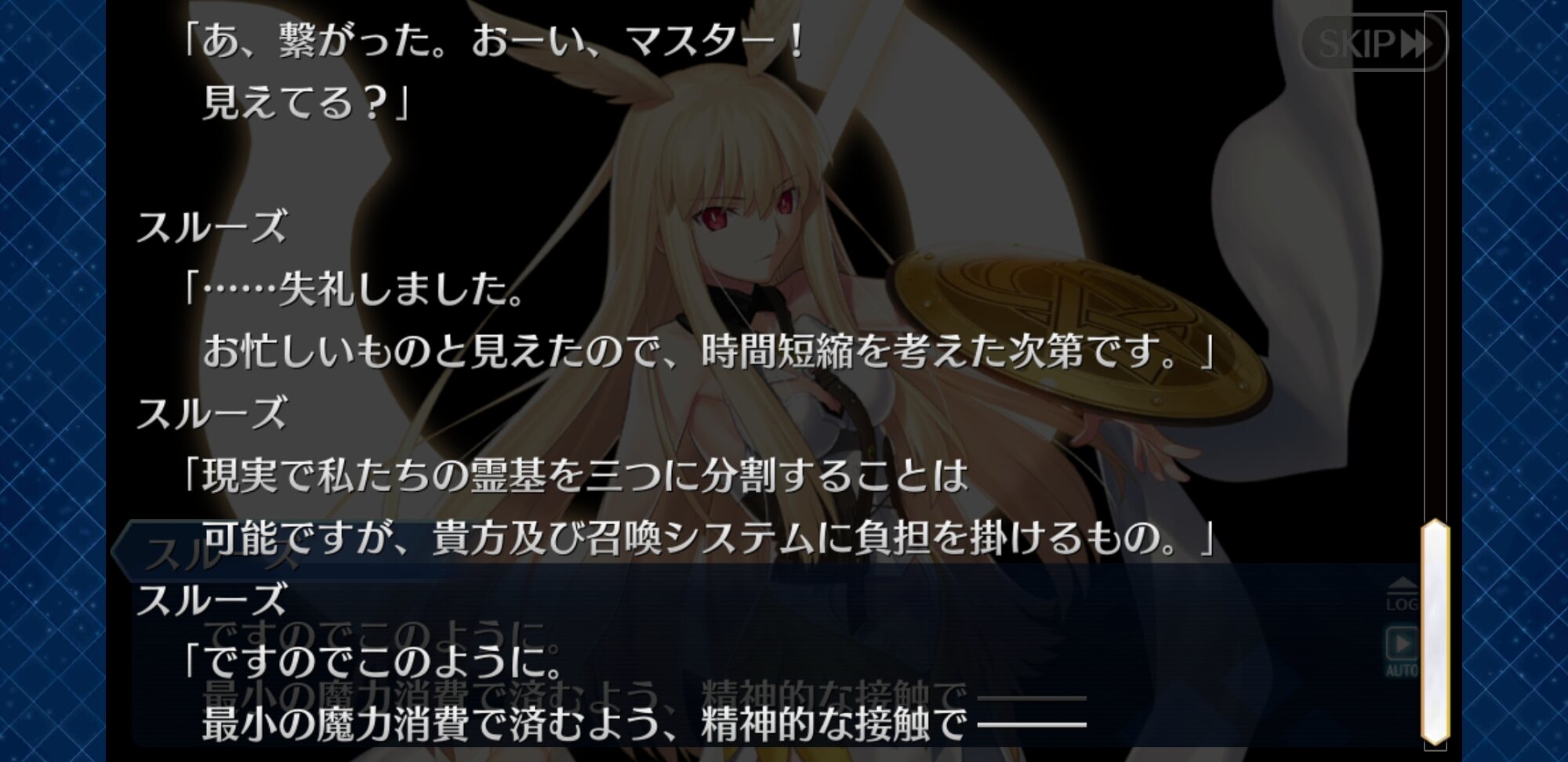 個人的な意見としては短剣には魔術刻印みたいに遡行術式が刻んであるけど、一気に広範囲に使いたいなら魔術刻印みたいに刻んである遡行術式を一から組み直して使ってる(こっちが普段の演出)のかなーって。黒インナーはいいぞ