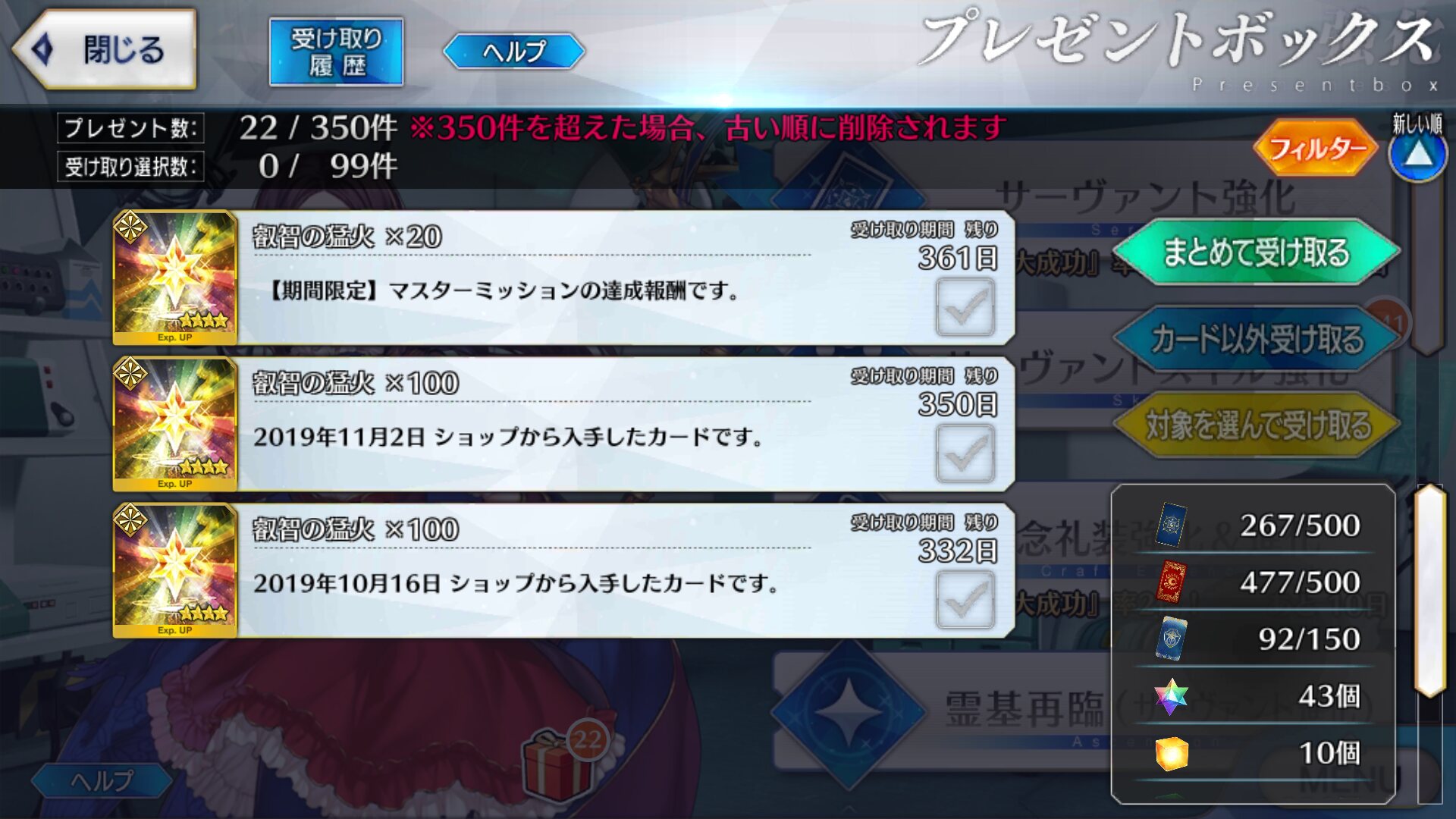 カルデアゲート→曜日クエスト→種火集めだ