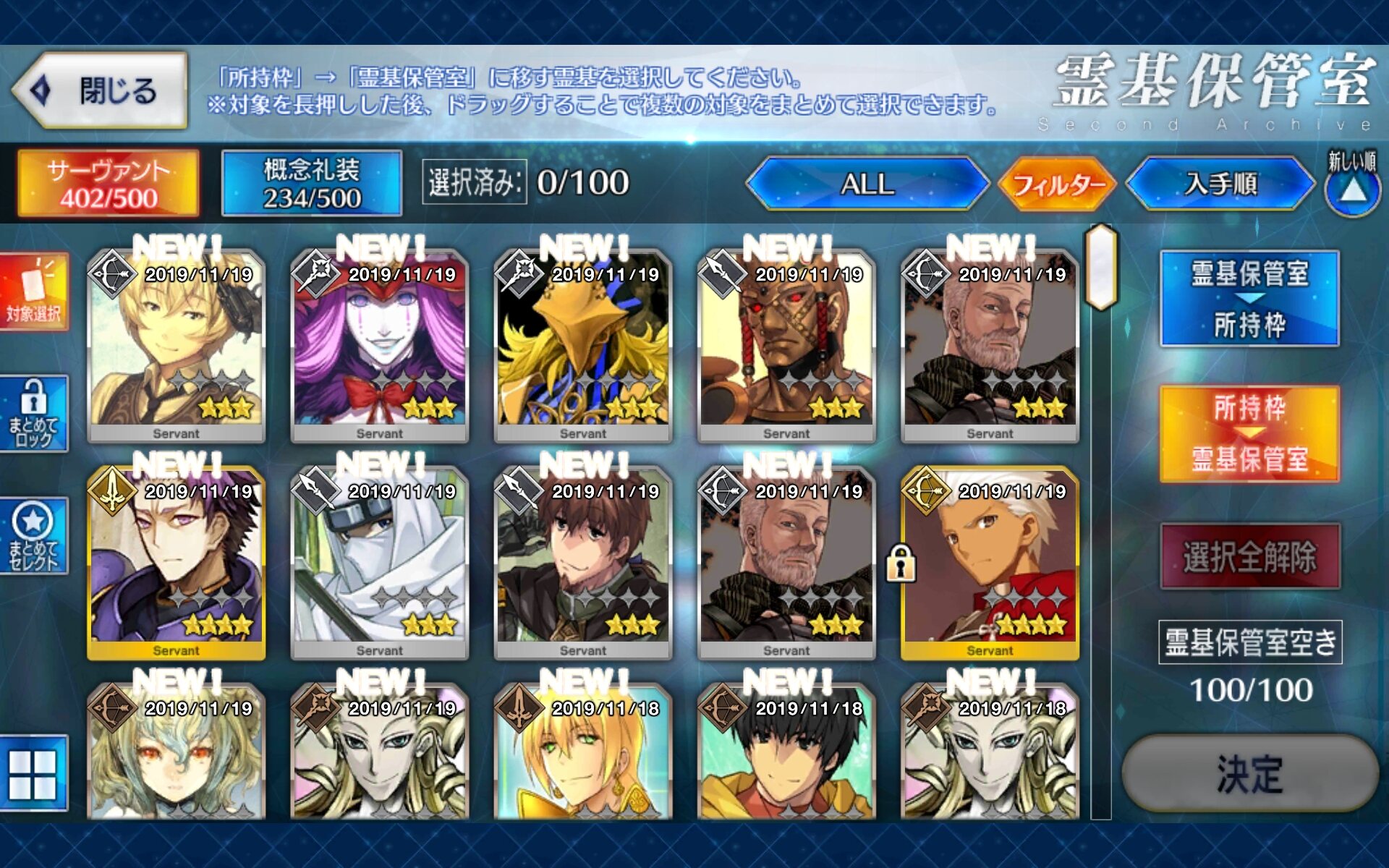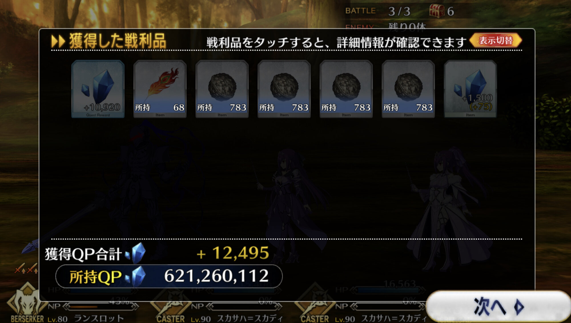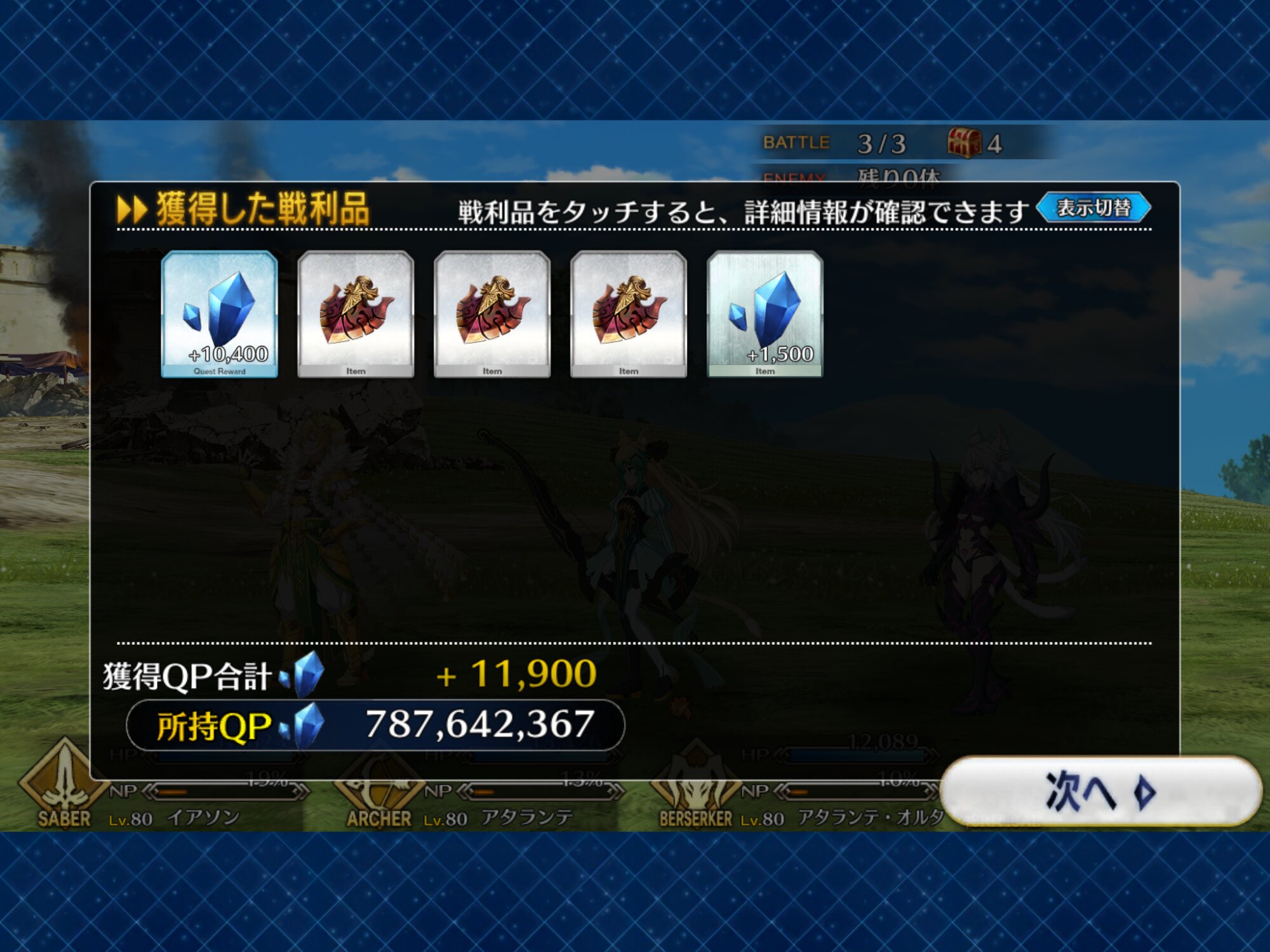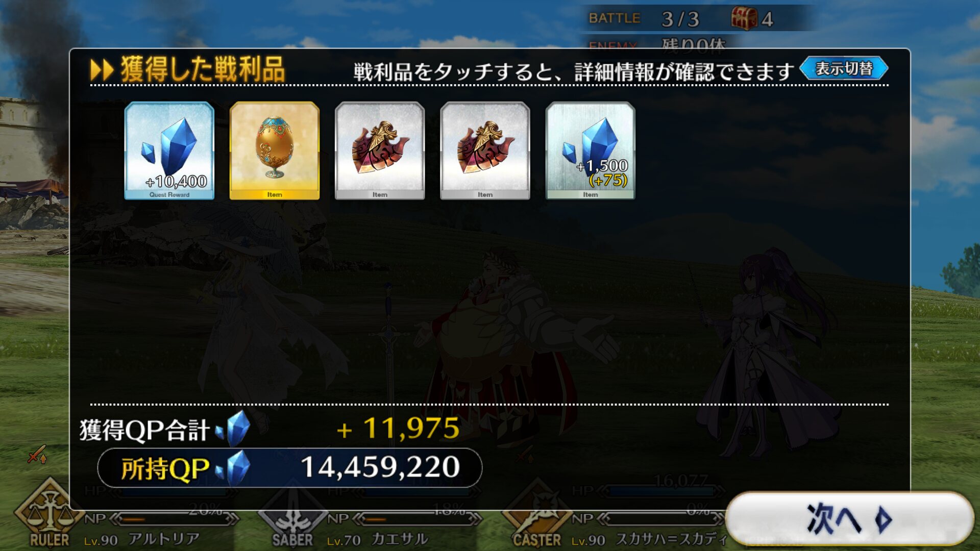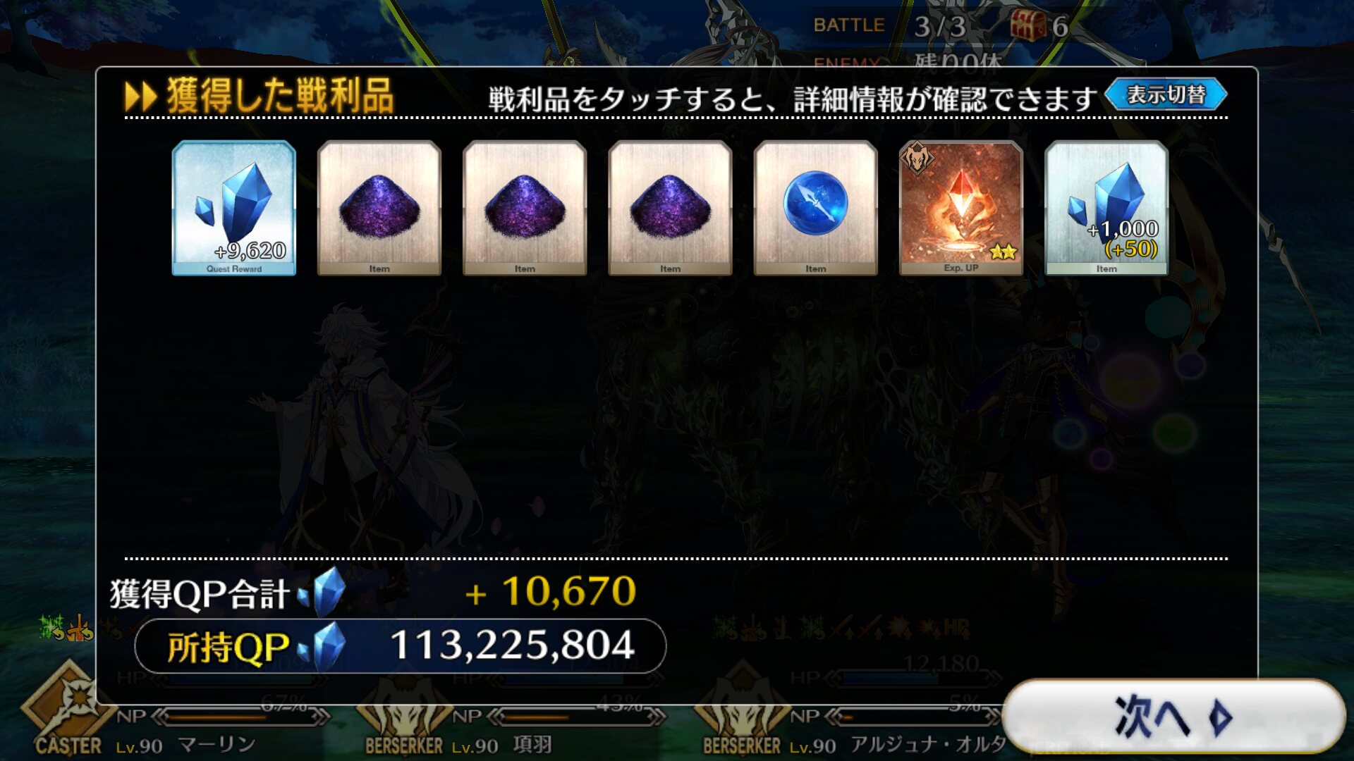 中堅の後、大将の前の四番目いつの間にか90連分の聖晶片が貯まってた
