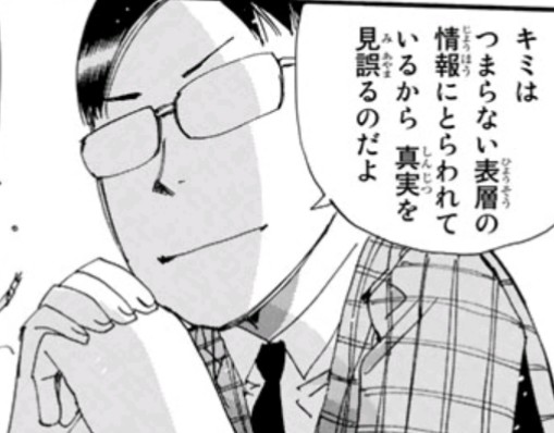 その画像は天国とか地獄とかのスピリチュアル世界を否定しているキャラだけど、その漫画の世界にはおそらく地獄が実在するし死人は霊界通信してくる。つまりそのキャラの視点は作中において誤り……