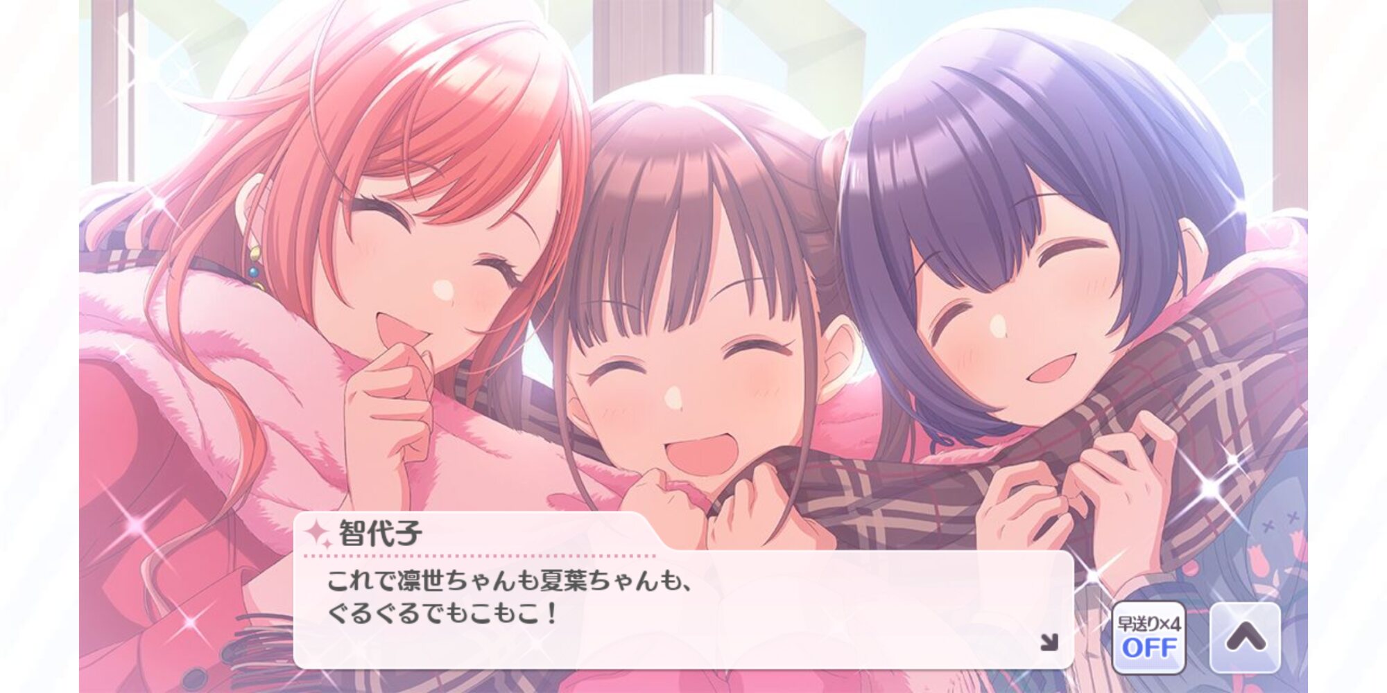 イベント報酬で濃厚なじゅりなつを見せ付けられるのみならず、新しいガチャSRでもりんちょこなつのマフラー仲良し一緒巻きまで見せ付けられた夏葉Pの情緒はもうボロボロ(満身創痍)>>941