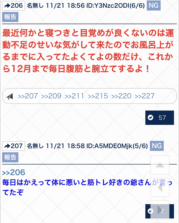 腕立て伏せと組み合わせるなら自重アームカールが良いぞ。鍛えたい方の腕を反対の手で押さえて、まっすぐゆっくり曲げ伸ばしするんだ。ダンベルがあるならダンベルカールやハンマーカールもおすすめだ!肩を動かさないよう注意しよう!いずれも10回3セットが基本だぞ!無理のない範囲で楽しく筋肉ライフ!やっぱり予想通り>>887への返信でちらちら自分の嫌いなやつ上げて叩いてる感じなの湧いてるな887の目論見通りってところか?