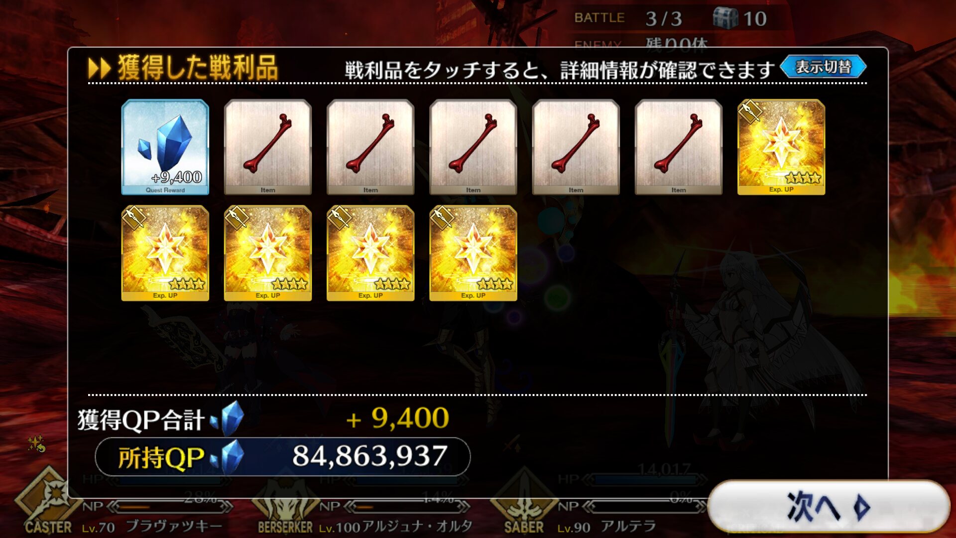 骨ハント残り40分弱これは何かそれっぽいこと言って退場したらみんな欲しがるだろうというFGOでもよくやるライダーの策略