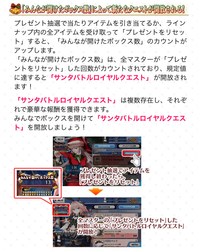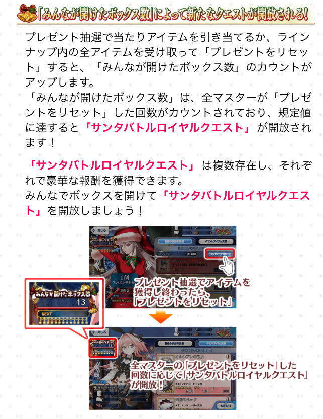 今回で今までのようなクリスマスイベが終わりなら結局型月サンタがどんな姿なのか確認できなかったことが少し心残り。サンタクロース概念とか出てきた一方で聖ニコラウスの存在が示唆されてもいただけに