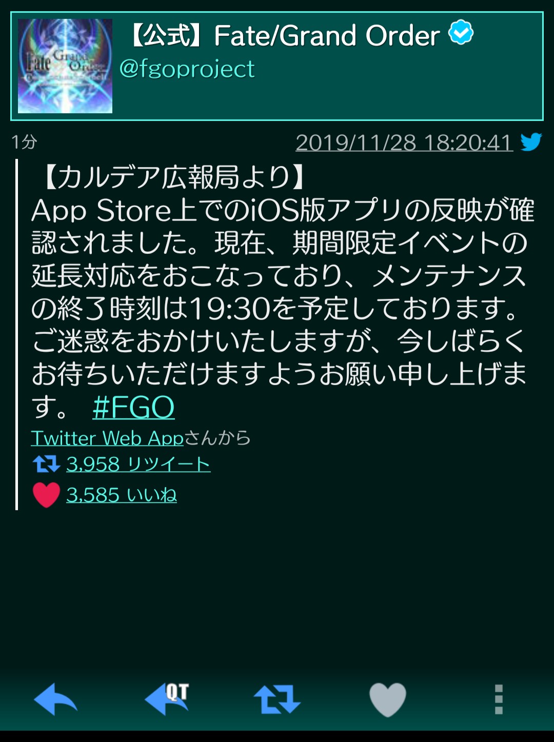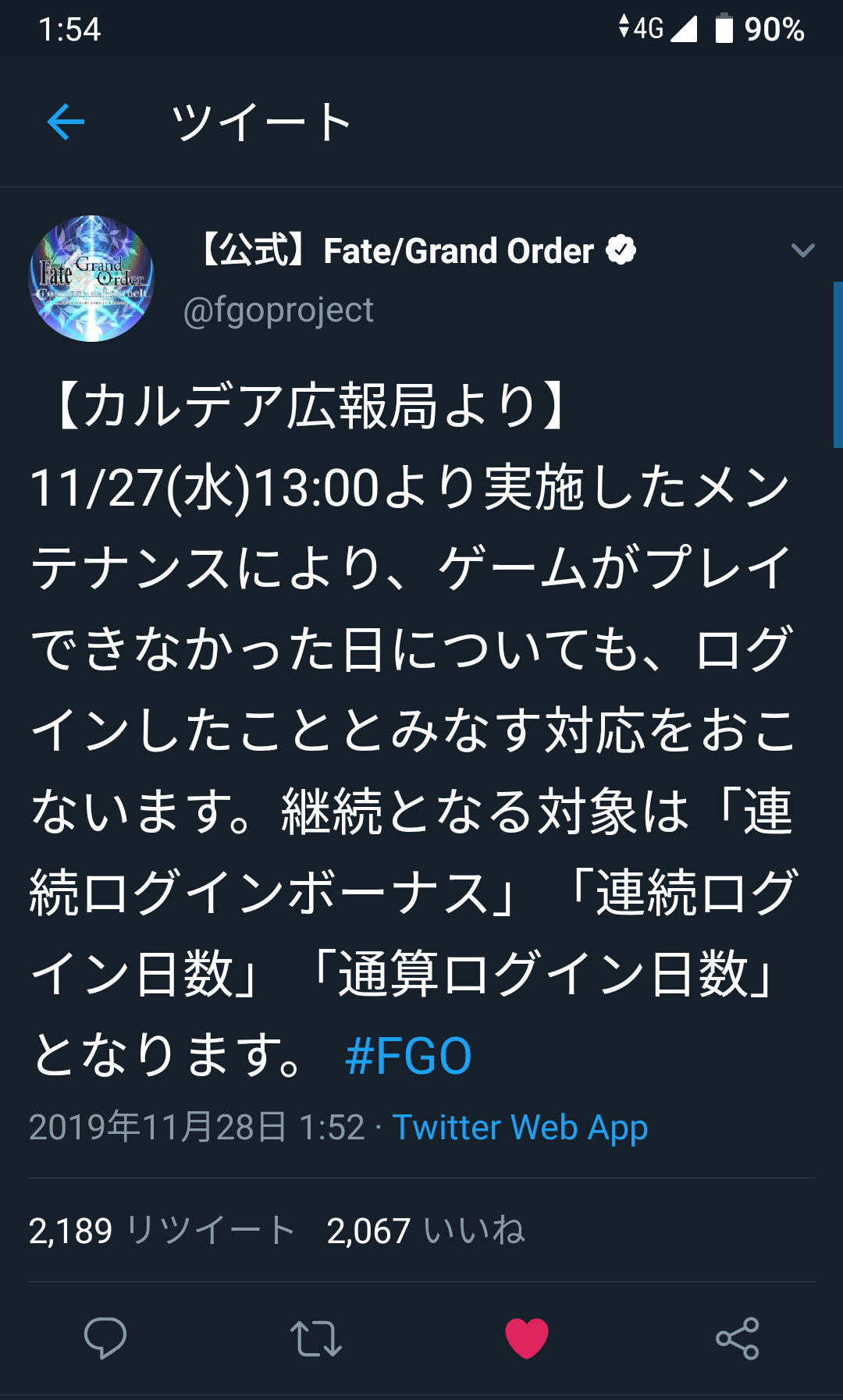 婦長用フォウ君とコマンドコードだけは交換したいと、ドロップ礼装を積んで回ってる最中だったので、早く来てくれて安心してすぐ凸ってしまった。
