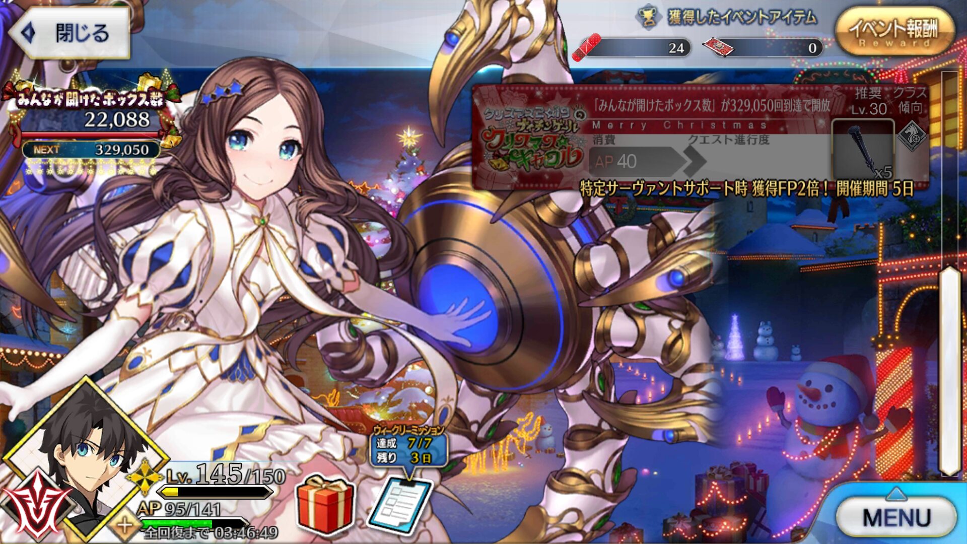 朝には行くかなもうくじ礼装凸をサポ欄に置いてくれているフレンドさんいるし、クエスト終える度に開けたボックス数カウンター増えてて怖い