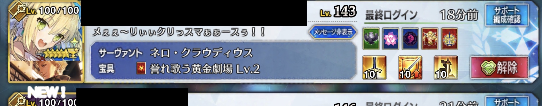 1箱目。なぜか今回は運が良かったので、まだ5箱目だけど既に3枚ドロップしてくれた。礼装凸ってフレンドの役に立てるの嬉しい。>>932