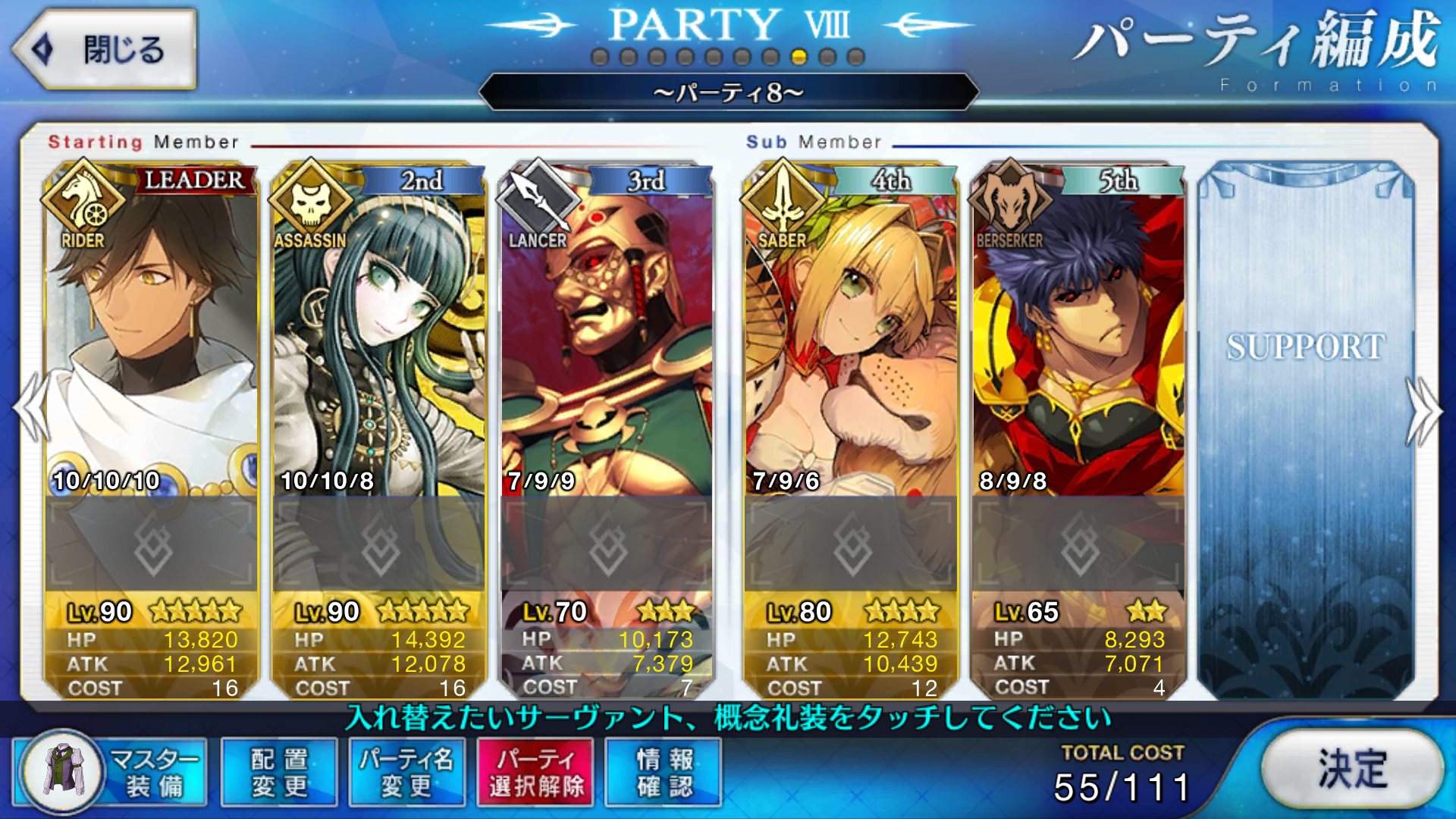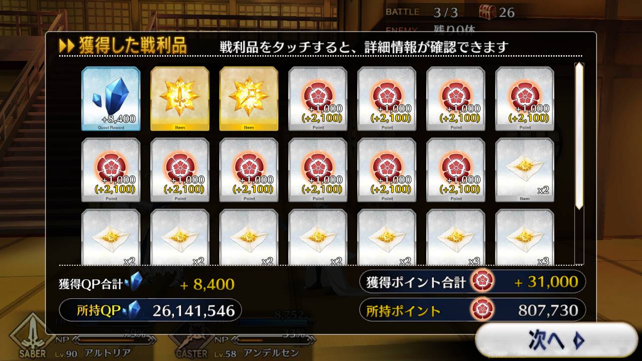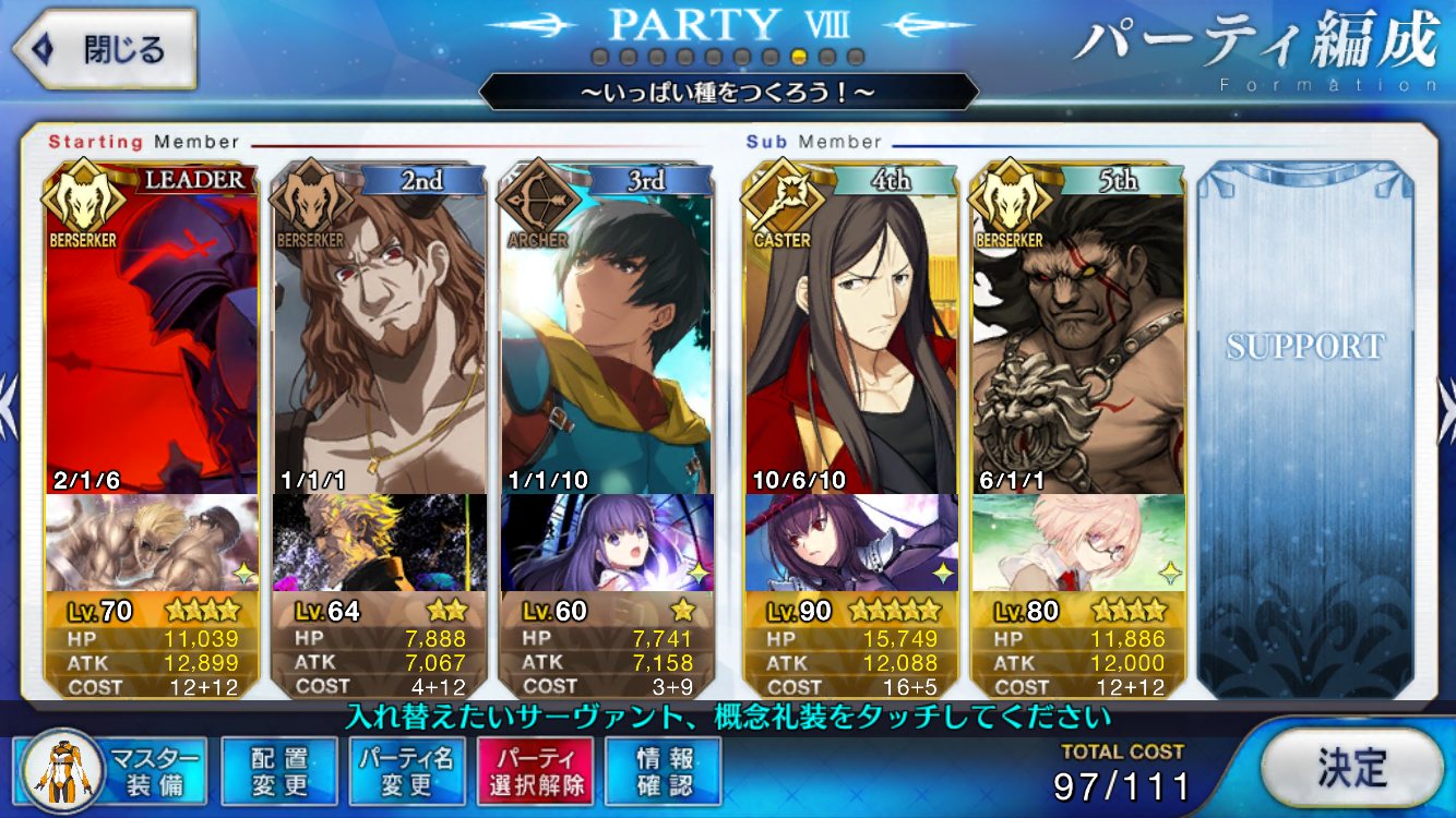 まあ個人的にはセイバーランスロット、ガウェイン、ベディ、乳上、獅子上、イスカンダル辺りはモーションがなーんかあと一押しって感じがするんだ変えて欲しいな茶々さん全交換したはずなのに一枚足りなくて、もしや合成したのかと涙目になってたけど、念のためプレボさかのぼってたらあった...
